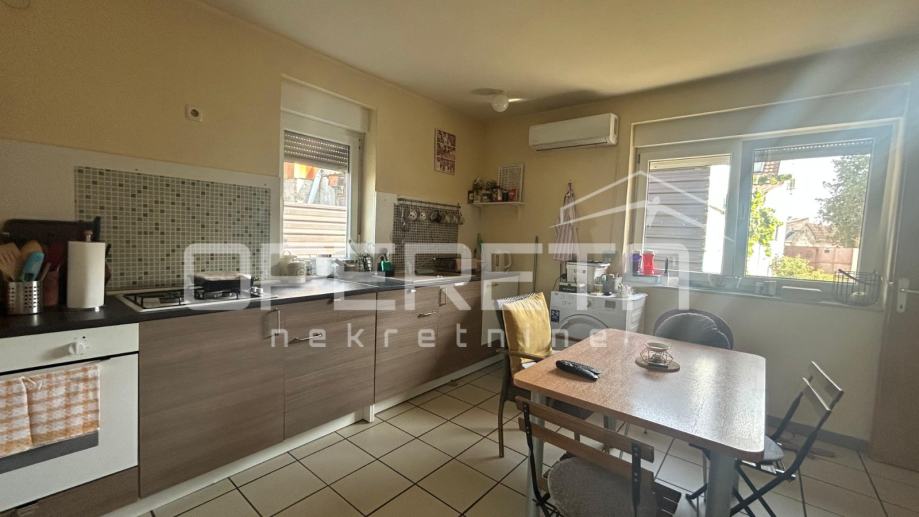 Kuća s ulične strane je površine cca 90m2 te zahtijeva kompletnu adaptaciju ili rušenje. U nastavku je kuća površine 133m2 koja je građena 2019. godine te je podijeljena na 2 stana. Jedan stan je u roh-bau fazi te zahtijeva uređenje, a sastoji se od kupaonice s WC-om, dnevnog boravka s kuhinjom i blagovaonicom te spavaće sobe. Drugi stan je uređen te se sastoji od ulaznog hodnika, dnevnog boravka, kuhinje s blagovaonicom te spavaće sobe.