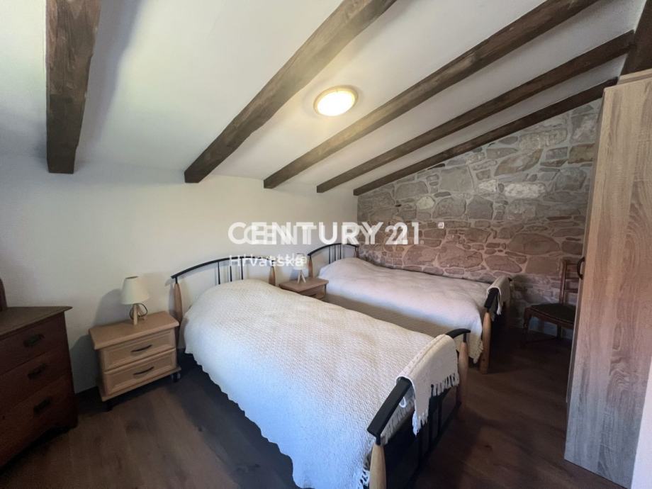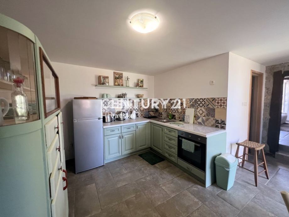 U prizemlju se nalazi lijepa kuhinja, kupaonica, te veliki dnevni boravak, dok se na katu nalaze 2 spavaće sobe i jedna kupaonica.