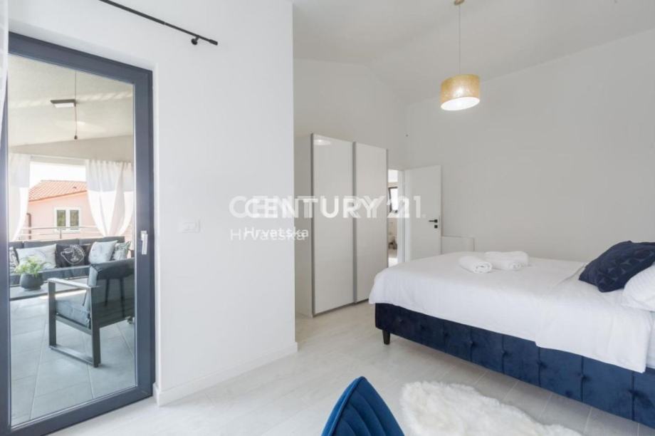 U prizemlju se nalaze dnevni boravak, kuhinja, spavaća soba i kupaonica, dok se na katu nalaze još 3 sobe, kupaonica te velika terasa.