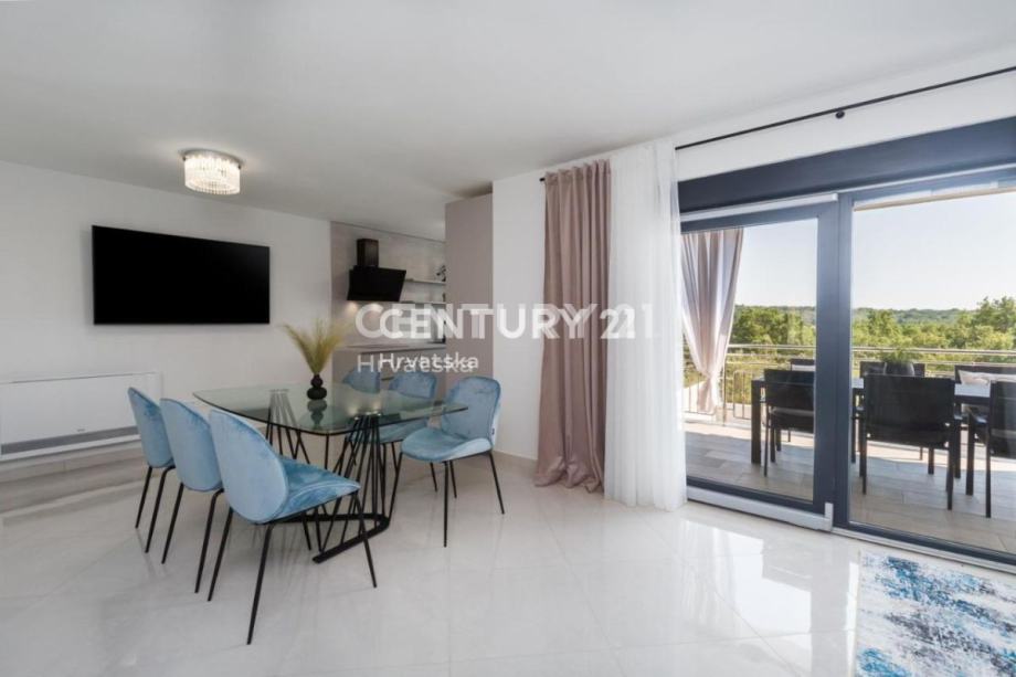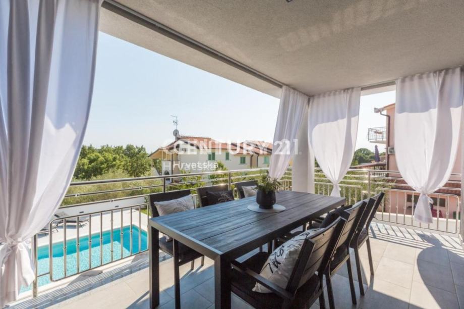 Ova lijepa moderna dvojna kuća nalazi se 7km od Poreča i mora, u mirnom naselju, s pogledom na prirodu i šume.