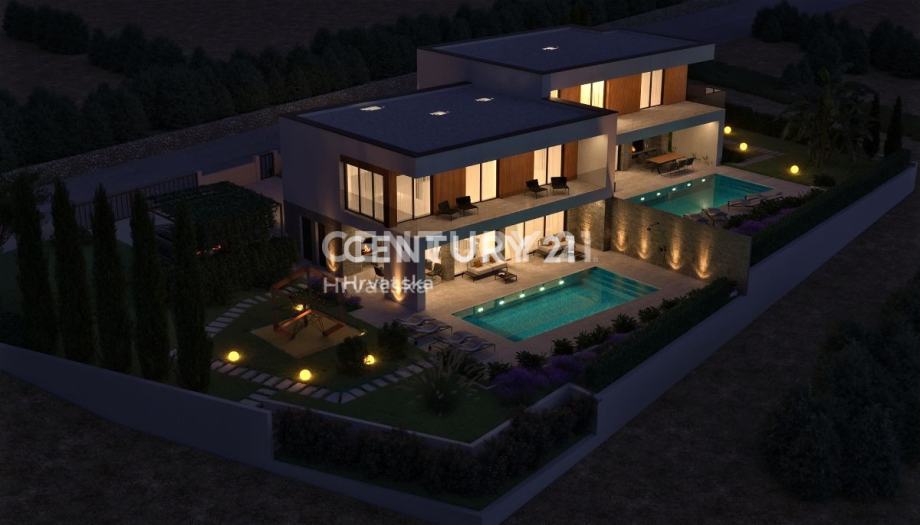 Kuća se sastoji od prizemlja i kata, s pogledom na more sa obje etaže. U prizemlju se nalazi prostrana kuhinja, blagovaonica, dnevni boravak, WC, spremište i tehnička soba. Na katu su tri komforne spavaće s obe, svaka sa svojom moderno opremljenom kupaonicom.