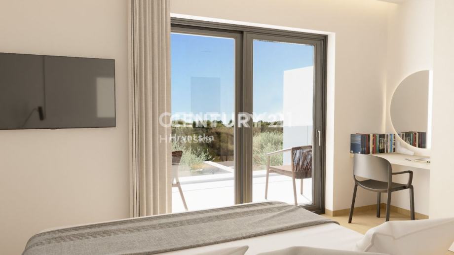 Kuća se sastoji od prizemlja i kata, s pogledom na more sa obje etaže. U prizemlju se nalazi prostrana kuhinja, blagovaonica, dnevni boravak, WC, spremište i tehnička soba. Na katu su tri komforne spavaće s obe, svaka sa svojom moderno opremljenom kupaonicom.