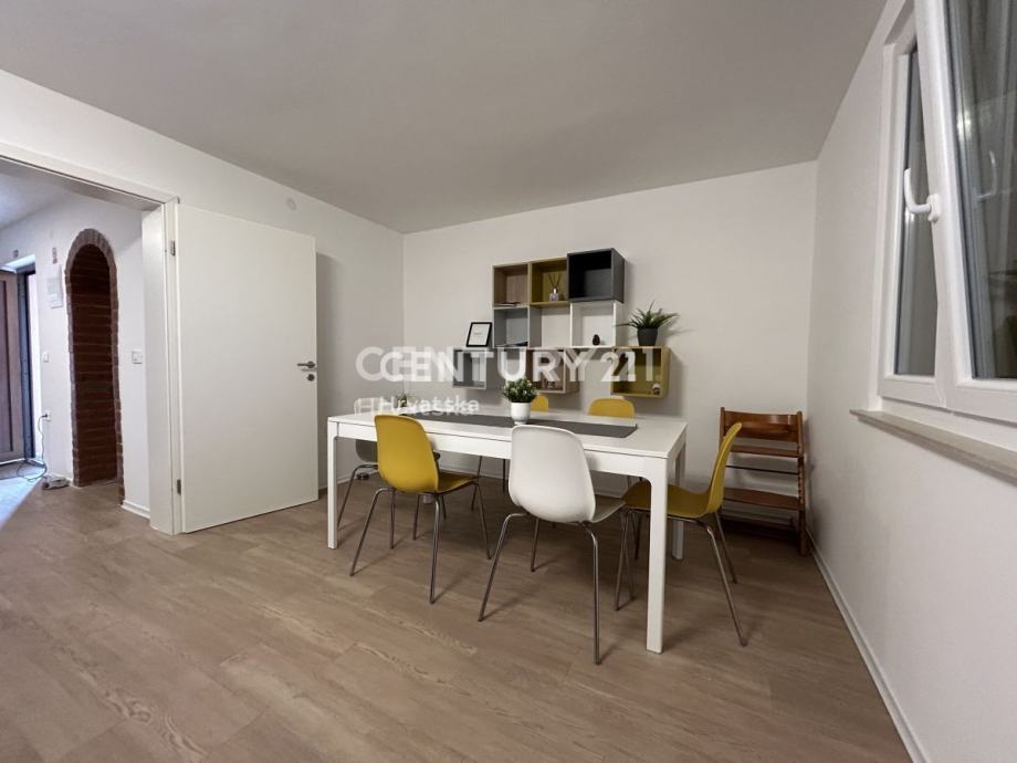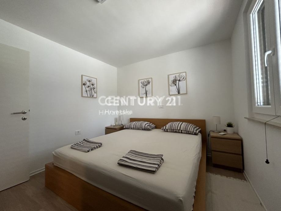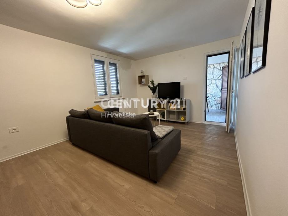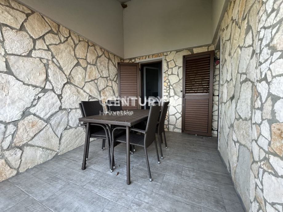 Stan u prizemlju površine 30 m2 koji se sastoji od ulaza, kuhinje i blagavaone otvorenog tipa, jedne spavaće sobe, kupaonice i wc-a, spremišta , te natkrivene terase površine 16 m2 i dvorišta površine 60 m2 i kojem se nalazi i vanjski roštilj, tuš i ljetna kuhinja.