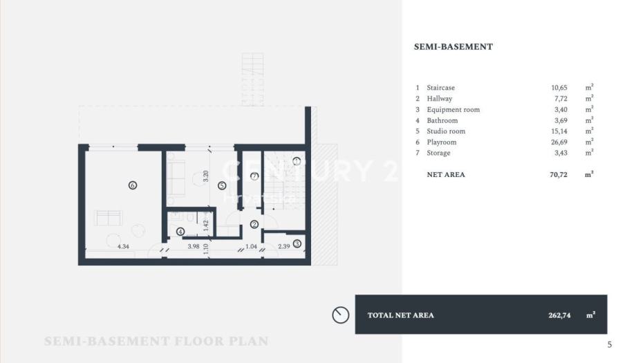 U suterenu nalazi se igraona, studio soba, kupaonica, tehnička soba te spremište.