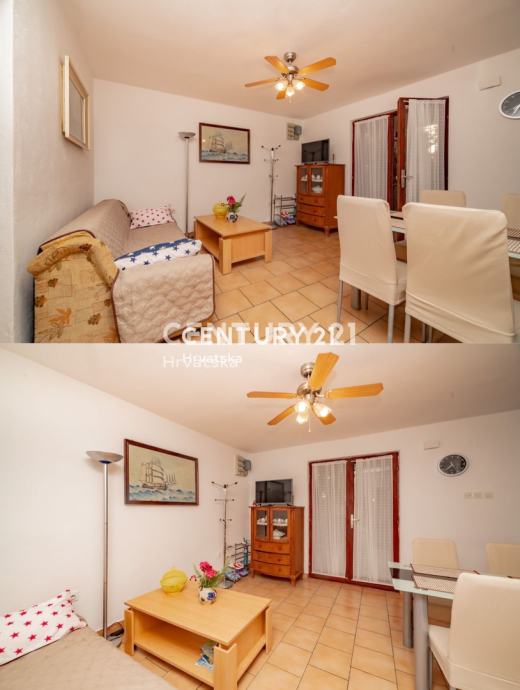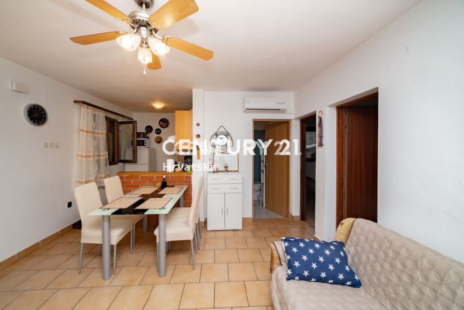 Kuća se sastoji od 2 stana istog rasporeda, svaki stan ima 2 odvojene spavaće sobe, kupaonicu sa tuš kabinom, kuhinju sa blagavaonom i dnevnim boravkom sa izlazom na terasu.