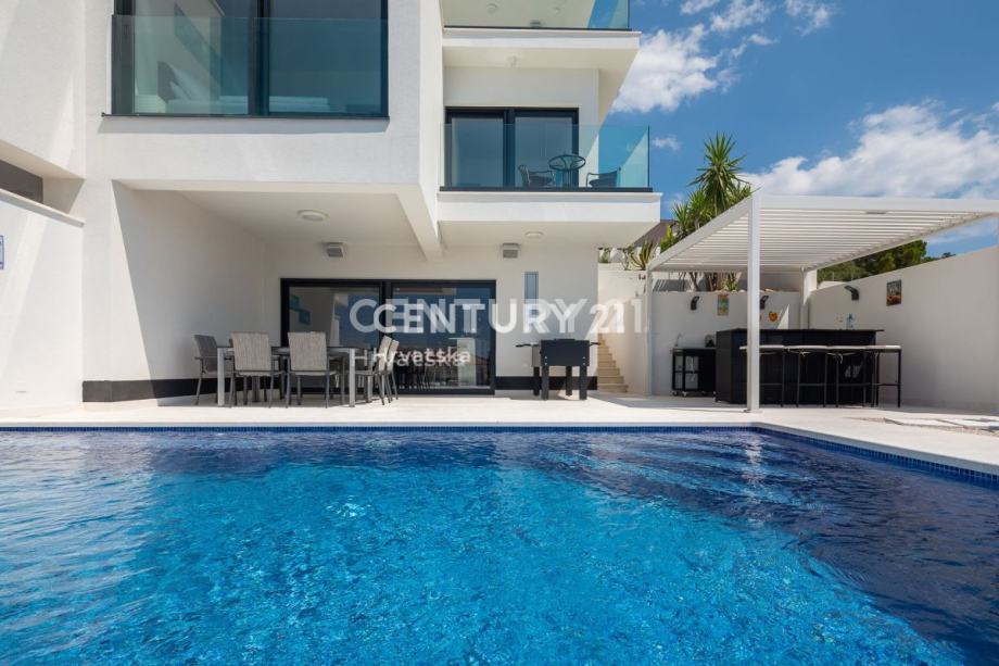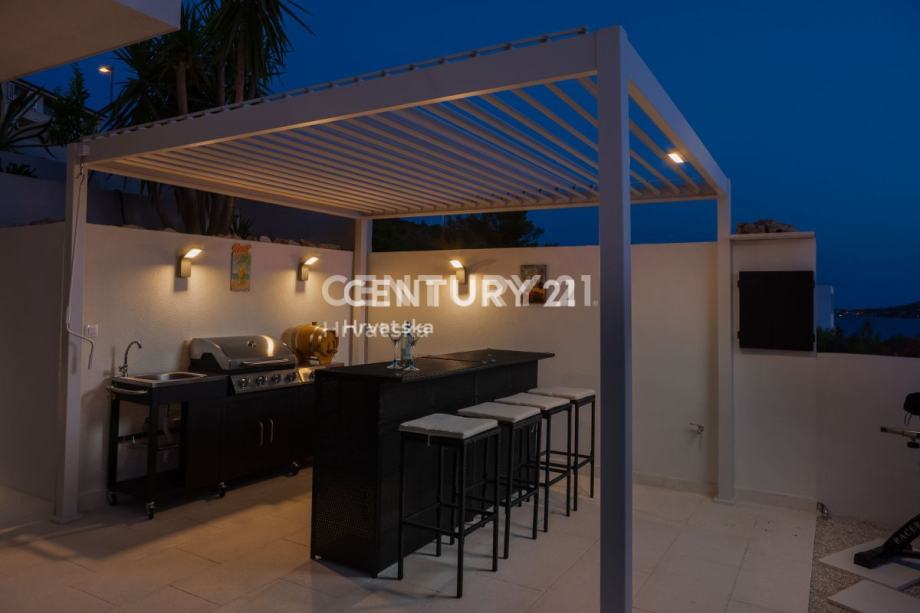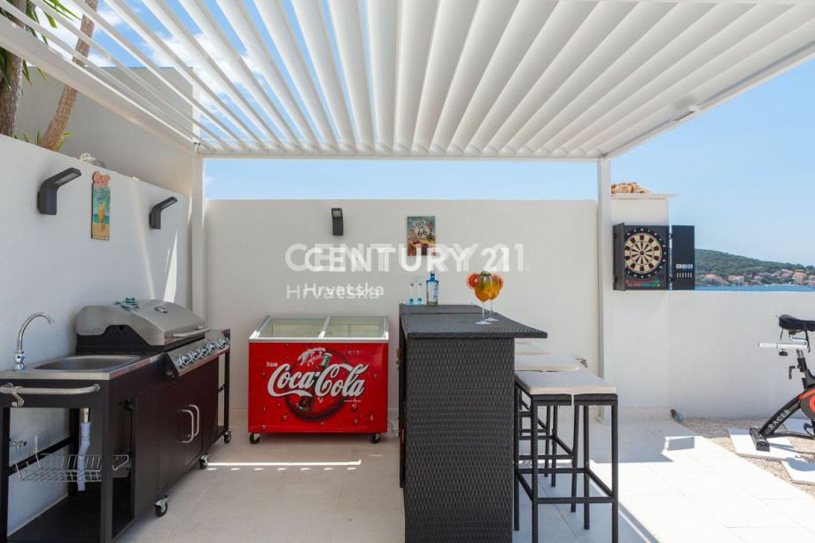 Ova vila za odmor nudi prekrasan pogled na more i zaljev i okolicu. Velika terasa s vanjskim namještajem i roštiljem idealna je za večernje druženje.Grijani bazen izvrsno je mjesto gdje možete uživati u svježe pripremljenim koktelima na baru na terasi ili gledati omiljenu TV emisiju dok uživate u nježnoj masaži mlaznica u bazenu.