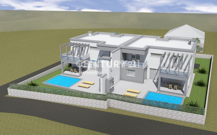 Na prodaju je dvojna kuća s bazenom u mjestu Vrsi, 20km sjeverno od Zadra. Trenutno je u fazi izgradnje.