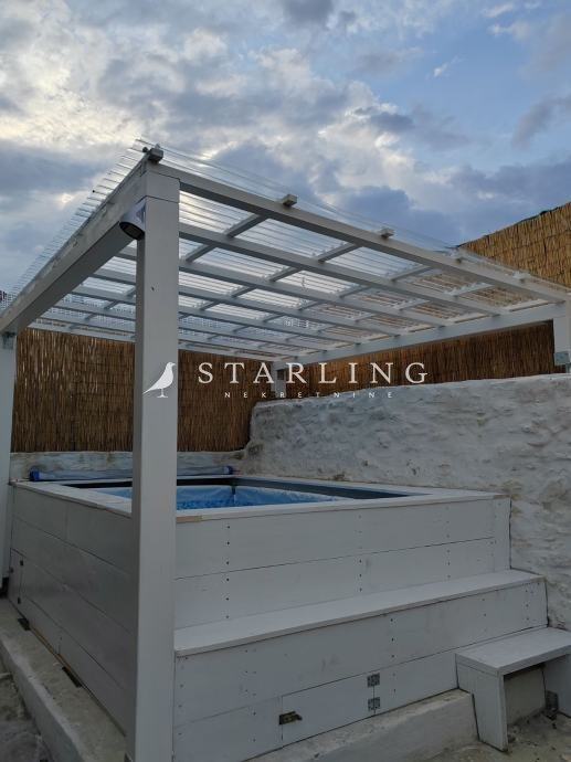 Površina adaptirane kuće iznosi 50 m2. U dvorištu kuće se nalazi objekt za potpunu renovaciju veličine 35 m2 koji je pogodan za manji apartman ili konobu. U dvorištu se još nalazi spremište i bazen.