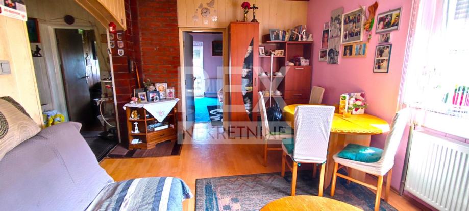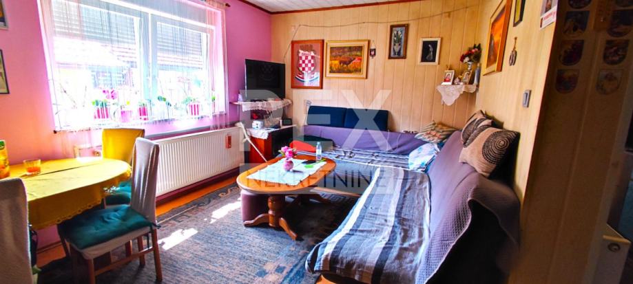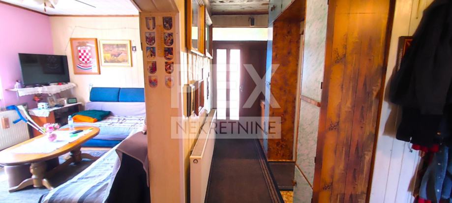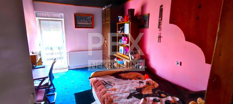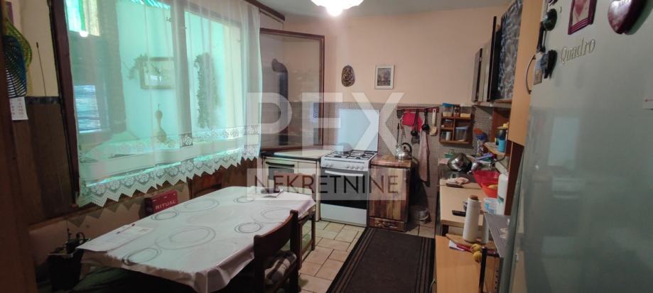 Stambena etaža sastoji se od ulaznog hodnika, kuhinje s blagovaonicom, toaleta, kupaonice, dnevnog boravka i 3 spavaće sobe s izlazom na balkon. Ispred se nalazi i prostrana terasa idealna za druženje i opuštanje veličine 48m2. Kuća je građena 1980.godine, djelomična renovirana 2018.godine. Promijenjene instalacije i stolarija (PVC prozori). Krov i fasada u jako dobrom stanju. Grijanje putem centralnog na drva.