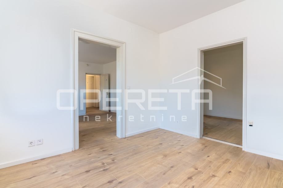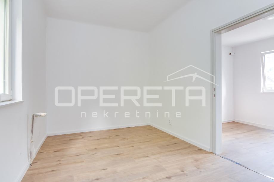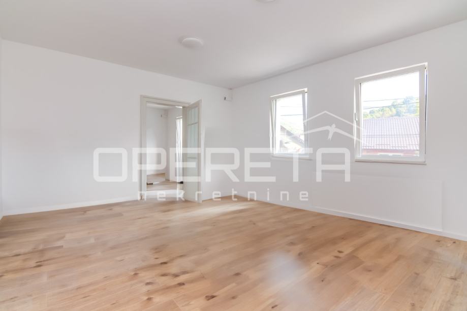 U visokom prizemlju je smješten novouređeni 4 soban stan od 86,32m2 koji se sastoji od ulaznog hodnika, odvojene kuhinje, četiri sobe i kupaonice.