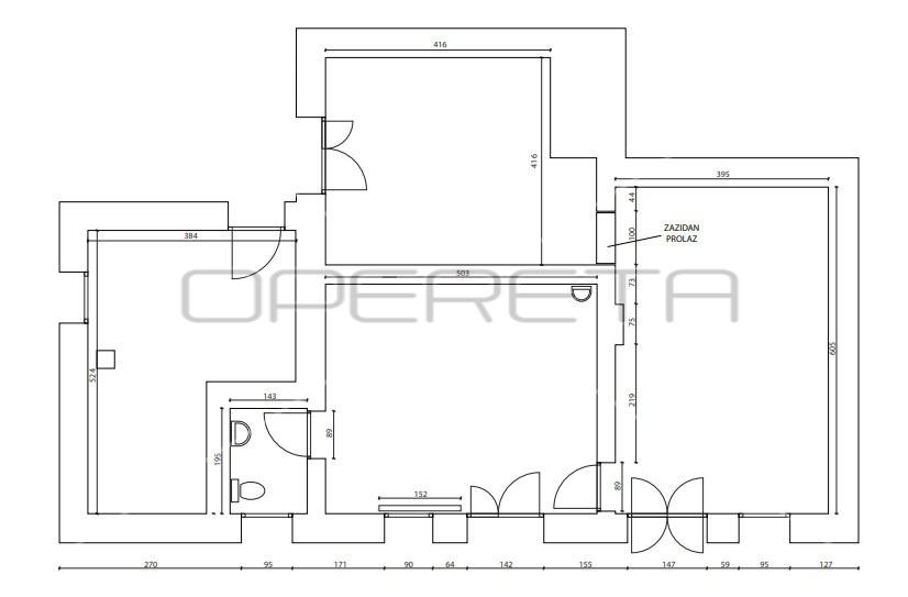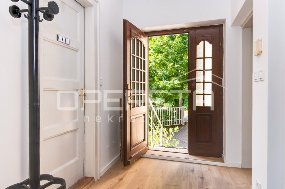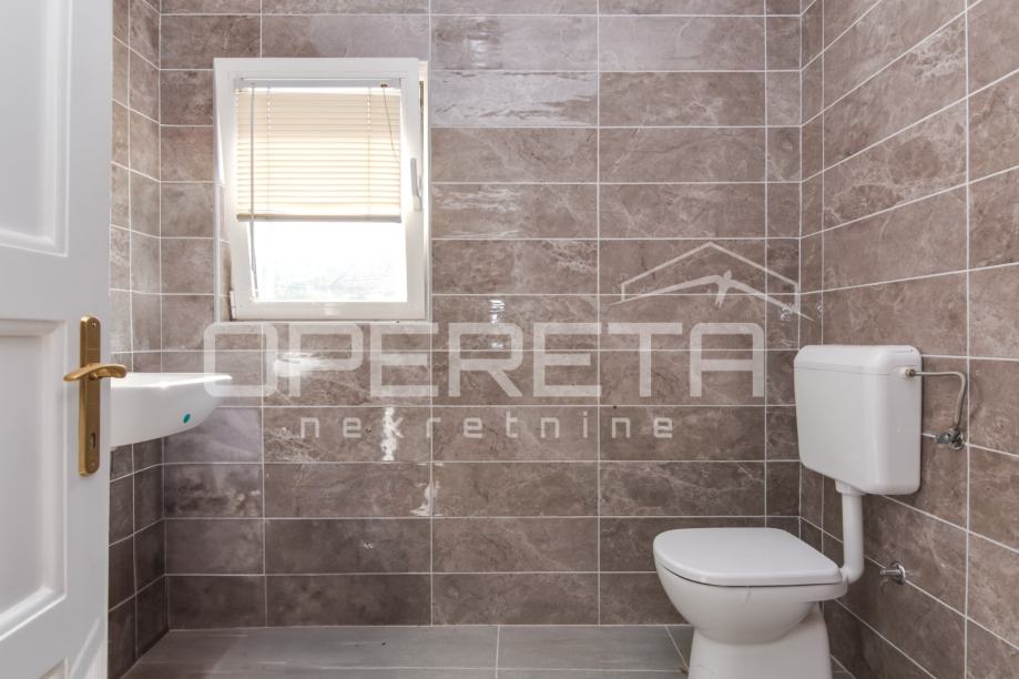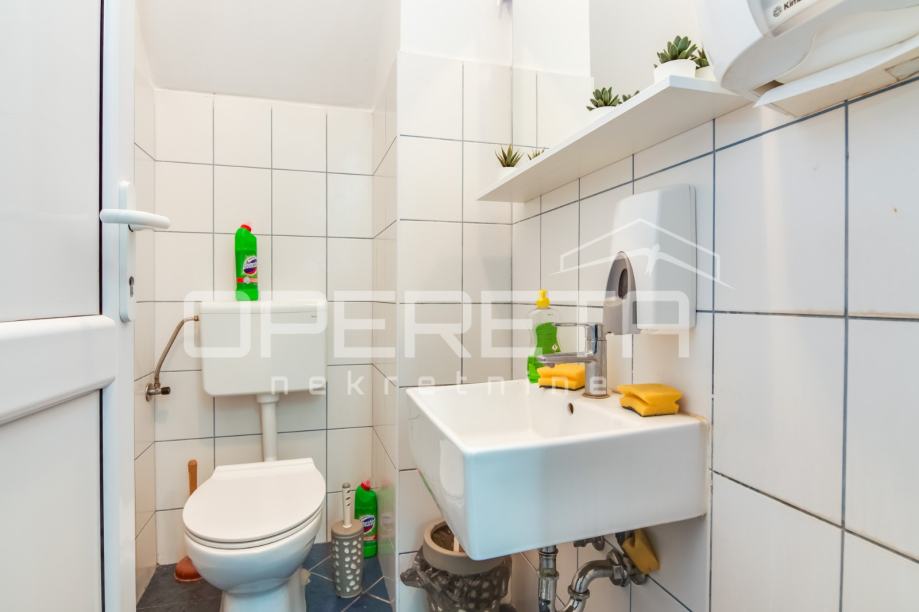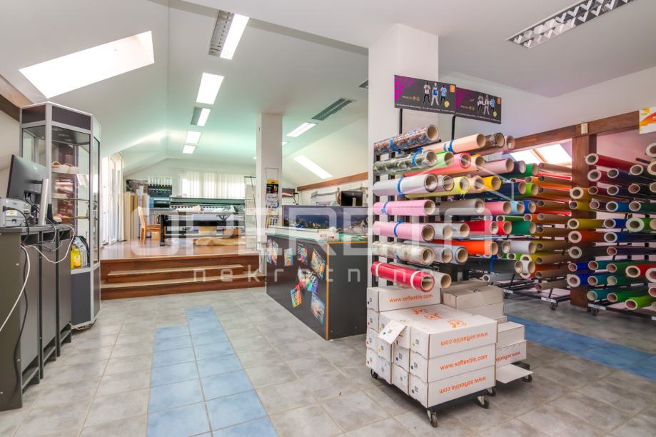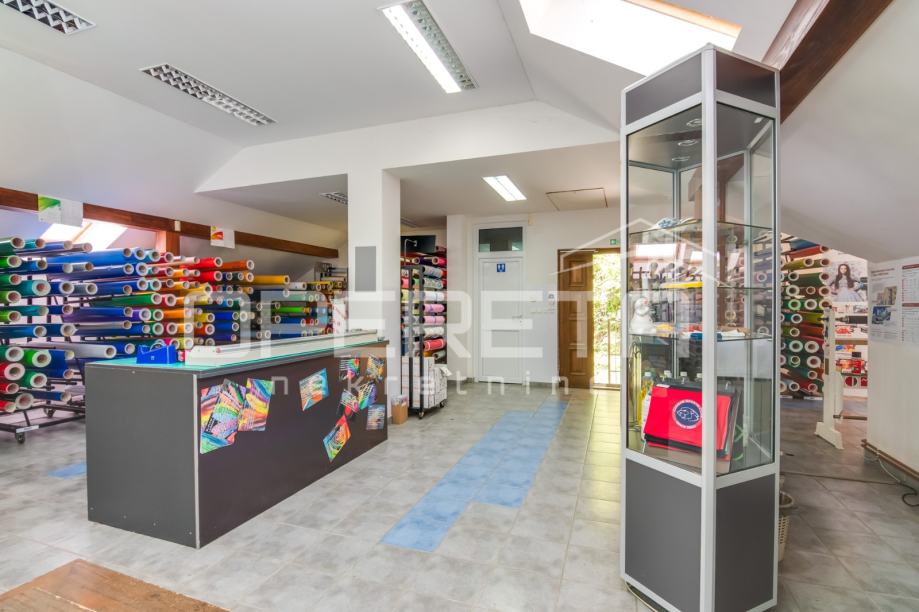 U razizemlju je smješten poslovni prostor 86 m2 koji se sastoji od dvije velike prostorije, toaleta, kotlovnice i spremišta. Uz manje preinake poslovni prostor se može proširiti i preurediti u stambeni. Kuća je kompletno renovirana nakon potresa po pravilima struke (kompletna dokumentacija dostupna).