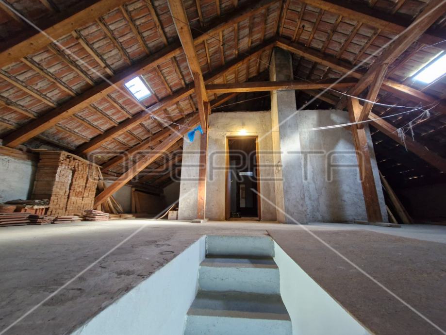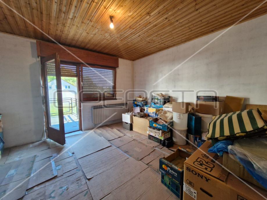 Kuća ima i spremište od 13,54 m2 te potkrovlje s jednom poluuređenom prostorijom iz koje se izlazi na terasu sa koje se prostire prekrasan pogled na Sljeme i zelenilo.