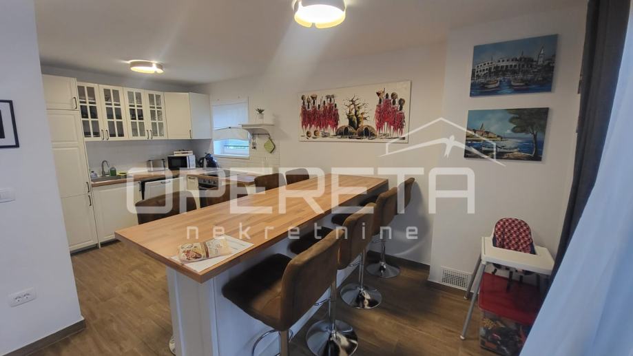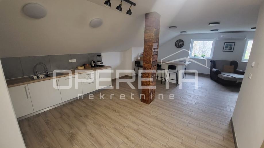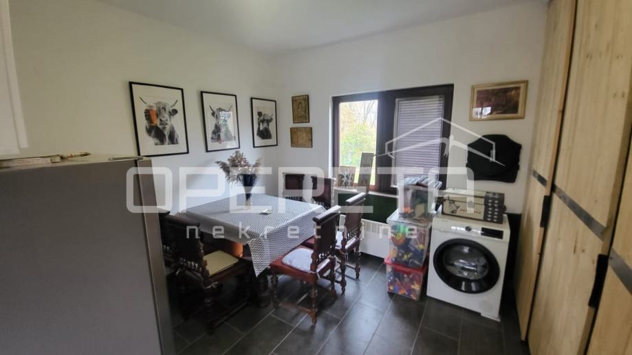 PRODAJA, KUĆA, Granešina, Novačka. Prodaje se kompletno namještena kuća sa 3 odvojene stambene jedinice. Vlasnici trenutno u jednom od stanova žive, dok druga 2 iznajmljuju na dnevnoj bazi i imaju ocjenu 9.8 na booking, te novi vlasnik može preuzeti kompletan posao i dobiti uvid u poslovanje. Kuća je kompletno renovirana i završena prošle godine (kompletno nove sve instalacije, krovište, podovi, fasada, asfalt, ekterijer i parrna mjesta, vanjska ograda, solarni paneli, namještaj i unutarnje uređenje). Odlična prilika za uhodani posao. Mirna lokacija 5 minuta od šume. Bus na 100 metara od kuće!