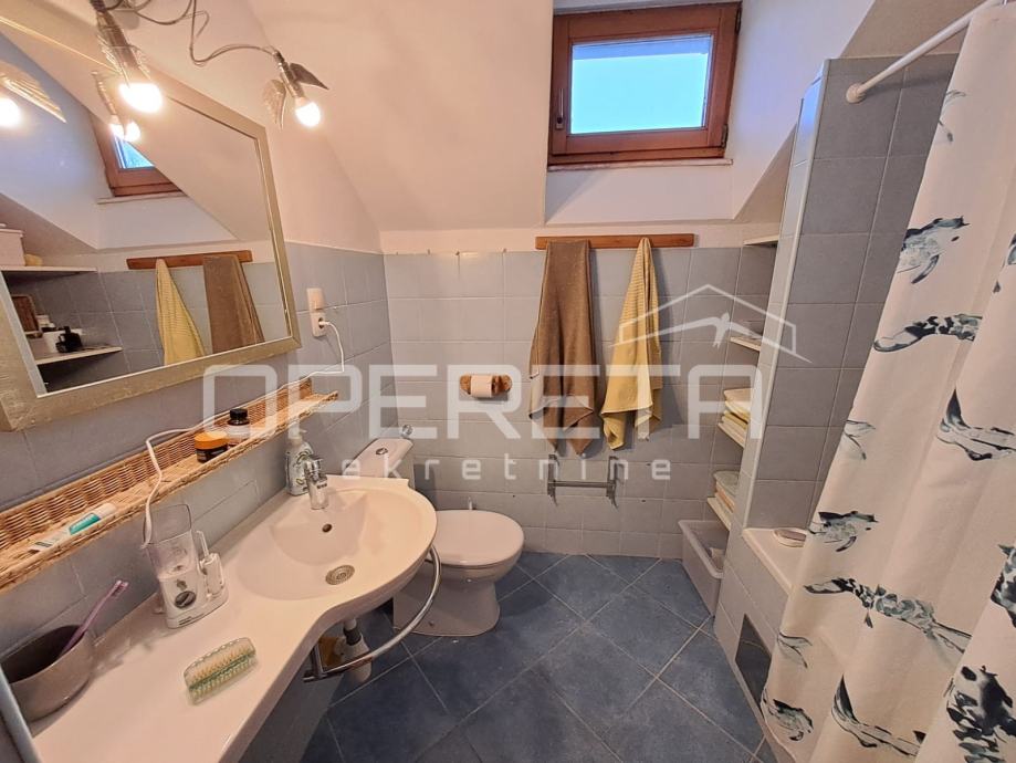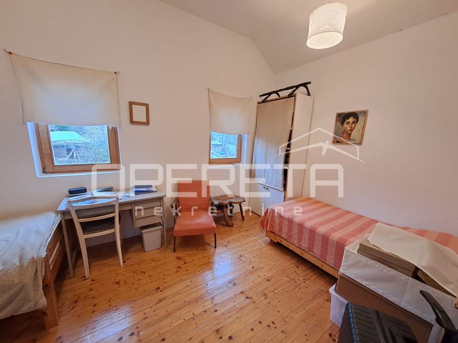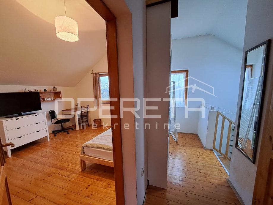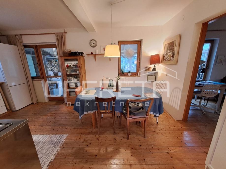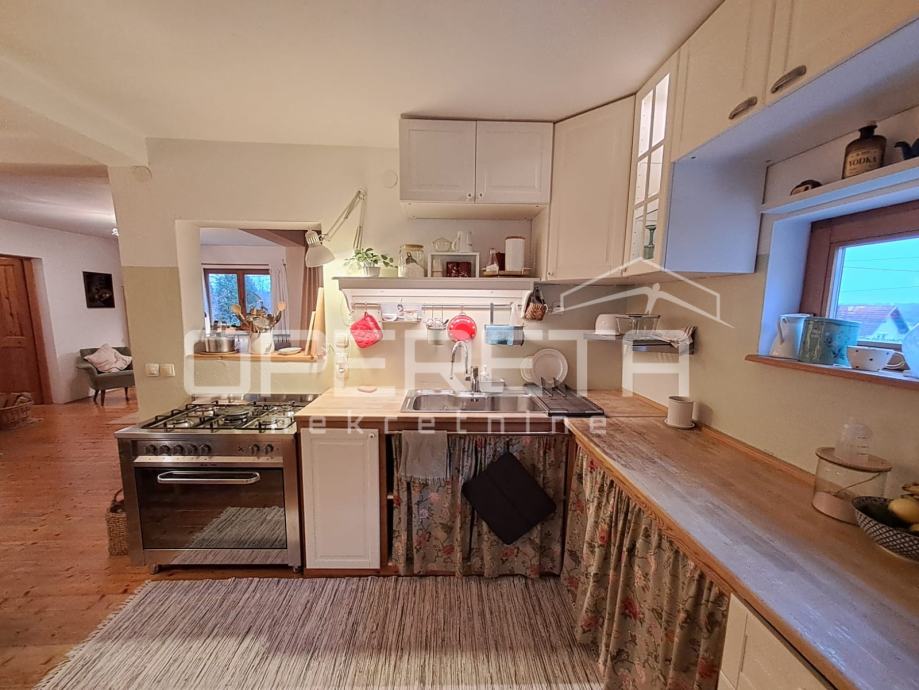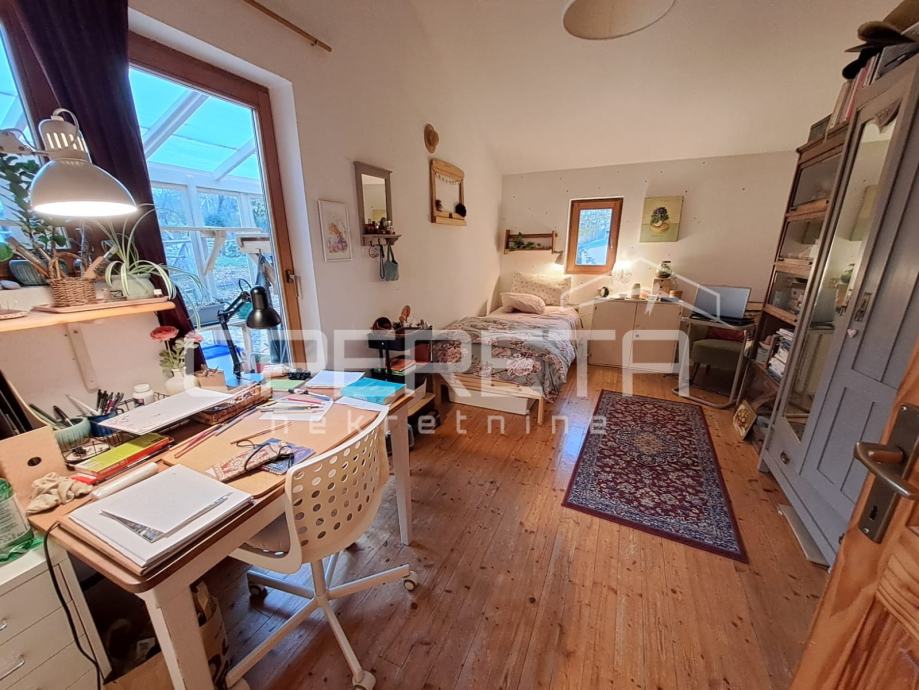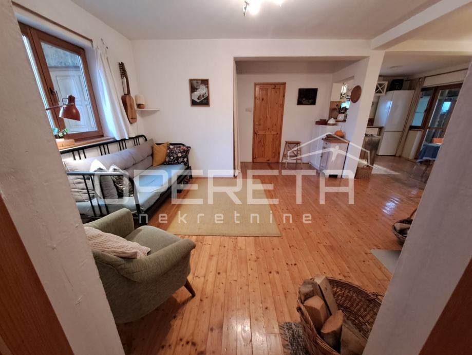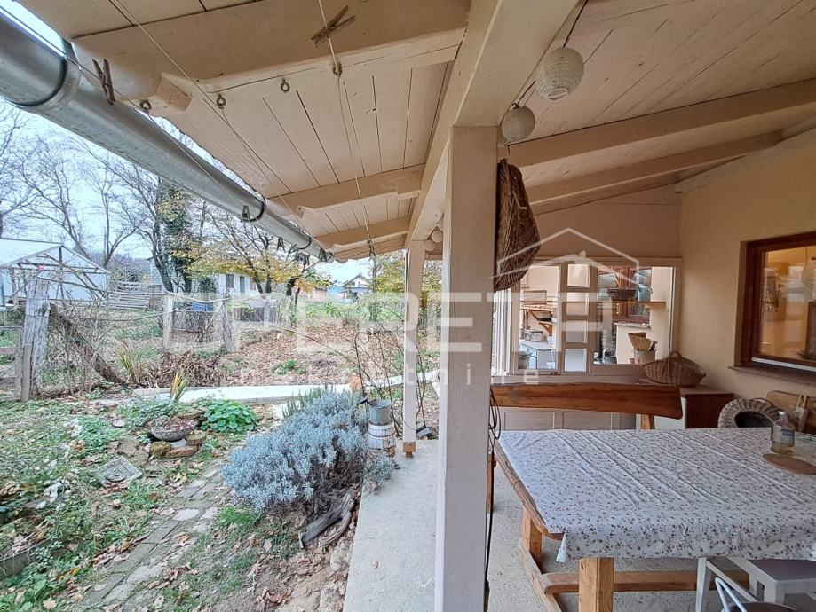 Na parceli od 1007m2 odlična, održavana kuća s vrtom i velikom okućnicom. Kuća se prostire u prizemlju na 92m2 kroz "open soace" dnevni boravak s blagovaonicom i kuhinjom, dvije prostrane sobe, wc s vešerajem i izlaz preko terase na vrt iza kuće. Na katu imamo 2 sobe i kupaonicu s wc-om na 45m2.