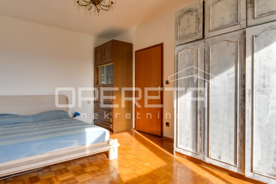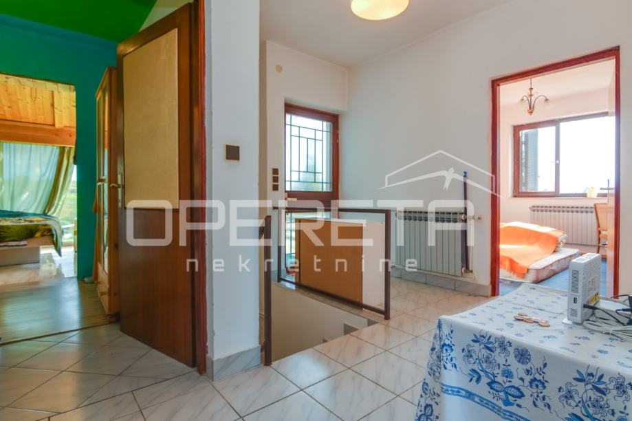 Na katu se nalaze tri spavaće sobe, kupaonica, te zaseban dio u kojem je, zatvaranjem terase, dobiven manji studio apartman sa svim potrebnim sadržajem (kupaonica, kuhinja, spavaći dio).