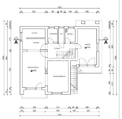 Iza kuće nalazi se nedovršen objekt zamišljen kao dvostruka garaža, tlocrtne površine 73 m2.