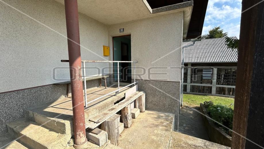 U mirnom dijelu Huma na Sutli je u prodaji kuća i gospodarska zgrada. Sastoji se od hodnika, dnevnog boravka, kuhinje s blagovaonicom, spavaće sobe, kupaonice te odvojenog WC-a. Građena je kvalitetno te nema oštećenja, ali zahtijeva renovaciju. Prostrano zemljište s blagim padom i pogledom na dolinu je kao takvo pogodno za turizam ili smještaj radnika. Na 5 minuta vožnje autom su svi sadržaji bitniji za život.