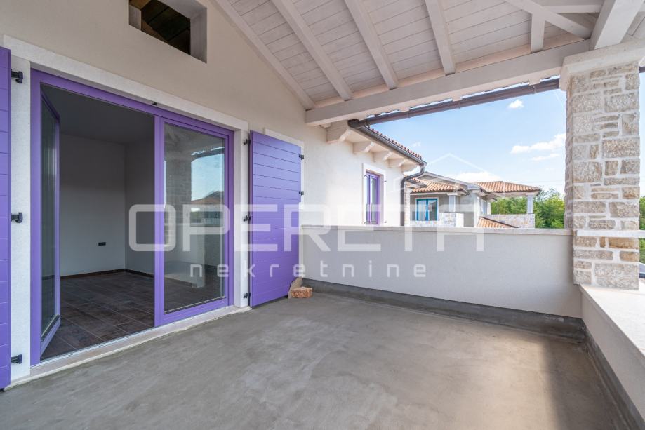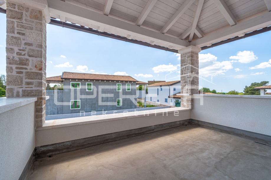Na katu se nalaze tri spavaće sobe s izlazom na natkrivene prostrane balkone u stilu istarskog baladura, svaka sa svojom kupaonicom i pogledom na more.