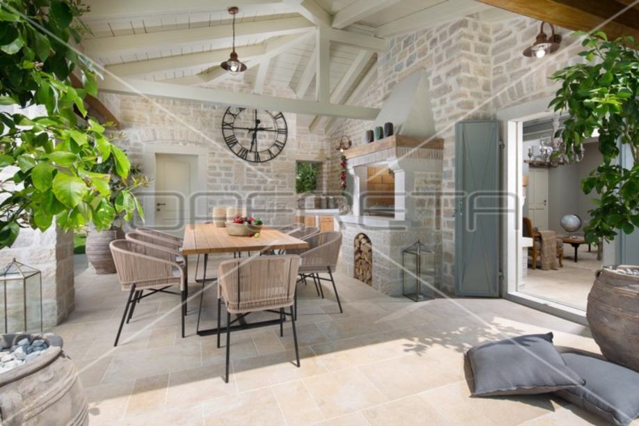 Kvalitetna i elegantna završna izvedba s izvrsnim izborom boja i materijala interijera. Vila je raskošno opremljena i namještena rustikalnim namještajem nudeći vrlo visoku razinu komfora.