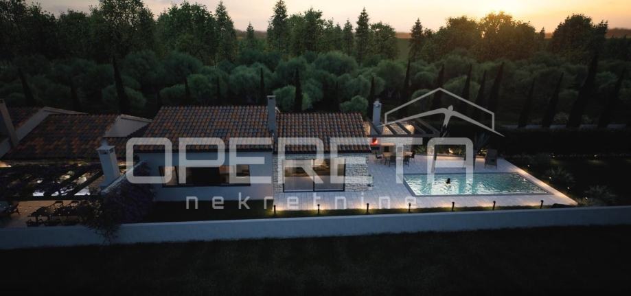 ISTRA, KAŠTELIR - Moderna prizemnica s rustikalnim šarmom s bazenom