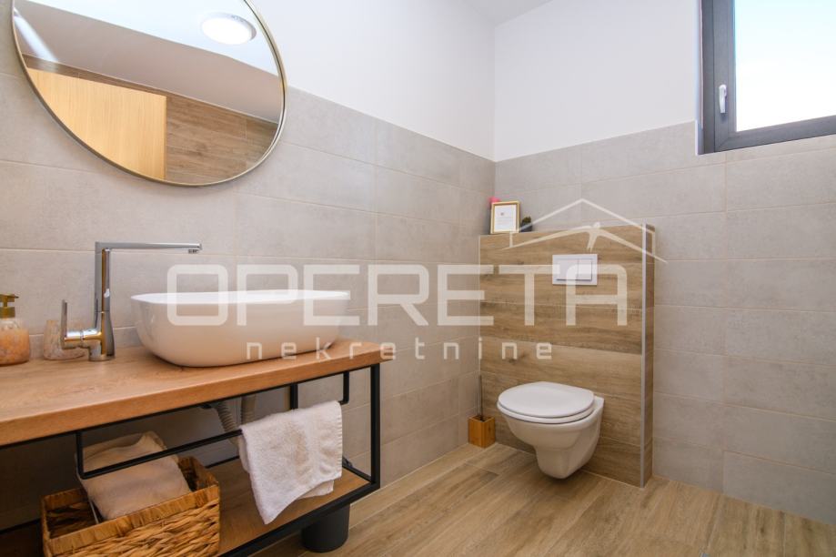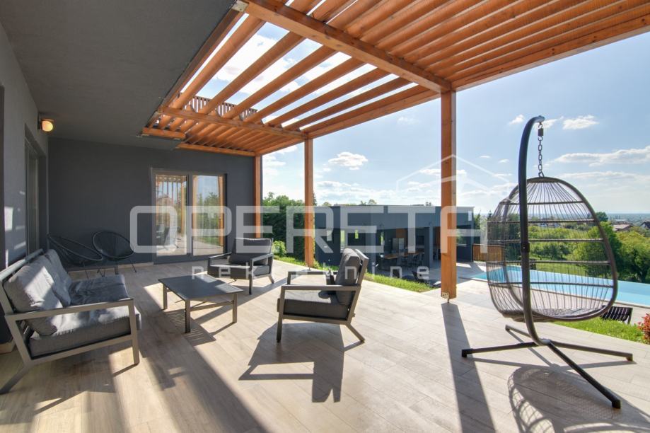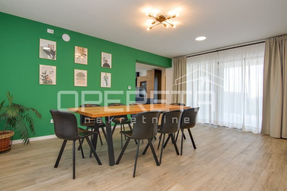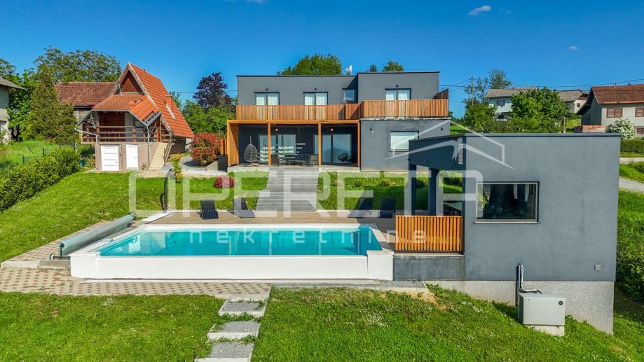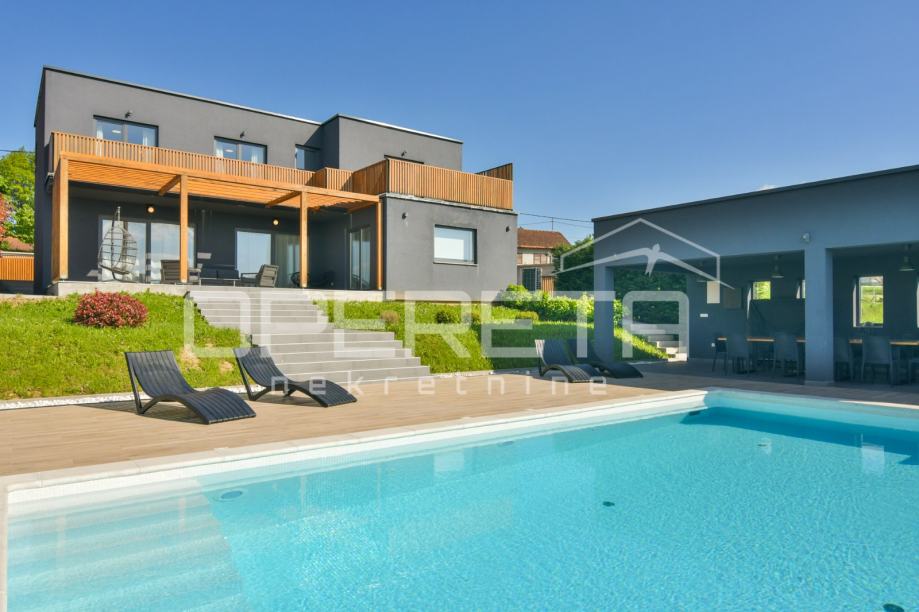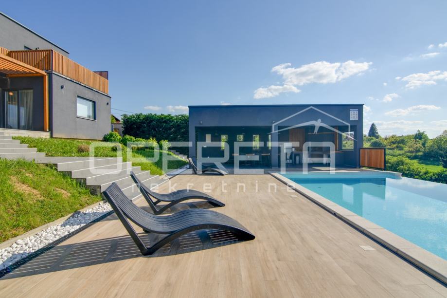 Kuća je idealna za turistički najam, organizaciju proslava, eventa, djevojačkih i momačkih večeri, ali zbog izvrsnog rasporeda može biti i obiteljska kuća na par minuta pješice od bitnijih sadržaja za život(dućani, vrtić...). Prostrani interijer moderno uređen, hortikulturno uređeno dvorište sa otvorenim veeelikim pogledom u daljinu, pruža udobnost i eleganciju, vanjski prostor s bazenom poziva na opuštanje i uživanje u sunčanim danima stvarajući nezaboravne uspomene. PREPORUČUJEMO!!!