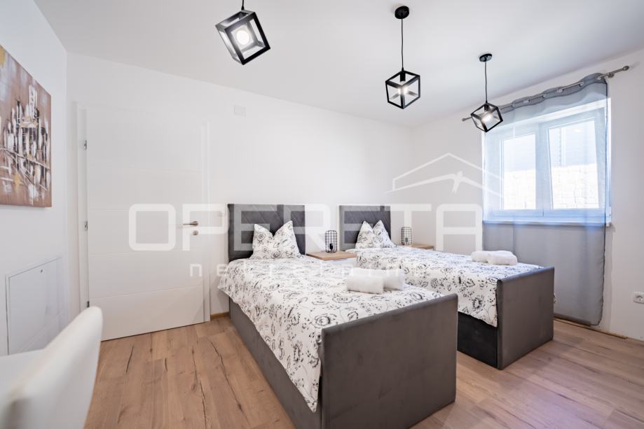 Kat: tri komforne spavaće sobe, svaka s vlastitom kupaonicom i izlazom na natkrivenu terasu.