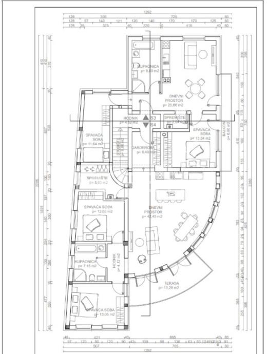 VEĆA KUĆA VELIČINE 220 M2 S DVORIŠTEM OD 280 M2 S IDEJNIM PROJEKTOM ZA IZGRADNJU-REKONSTRUKCIJU 4 STANA S 5 PARKIRNIH MJESTA U DVORIŠTU.
