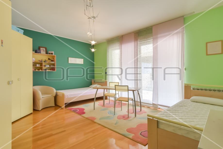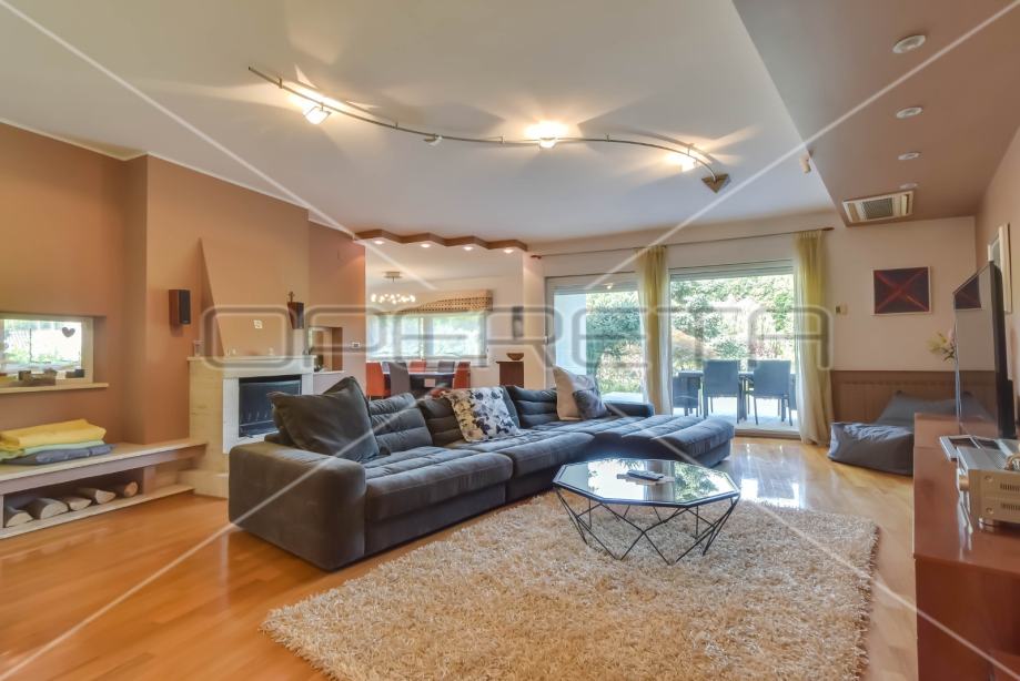 U mirnoj i zelenoj oazi nalazi se samostojeća kuća odličnog rasporeda, s prekrasnim vrtom. Kuća se sastoji od ulaza , kuhinje, dnevnog boravka s blagovaonicom koji imaju izlaz na terasu, dva wc-a, sobe i direktnog ulaza iz hodnika u garažu u prizemnom dijelu, dok se na katu nalazi master bedroom s vlastitom garderobom i kupaonicom (ima izlaz na balkon), dodatne dvije spavaće sobe koje imaju izlaz na lođu i kupaonice. U podrumskom dijelu nalazi se kotlovnica, spremište, teretana i vinski podrum, te wc. Osim duple garaže u dvorištu ima dovoljno parkinga za još dva automobila. Kuću okružuje prekrasno uređen vrt, te otvoreni pogled prema zelenilu i Dotrščini. Kuća je prikladna za sve koji žele život u prirodi i miru, a svega udaljeni 20 minuta vožnje do grada, 5 min od Maksimira, a autobusna stanica je na 100m.