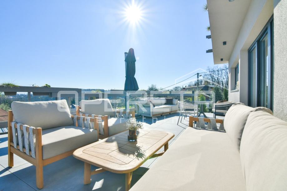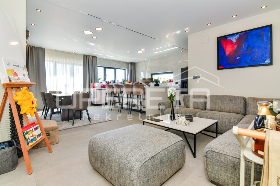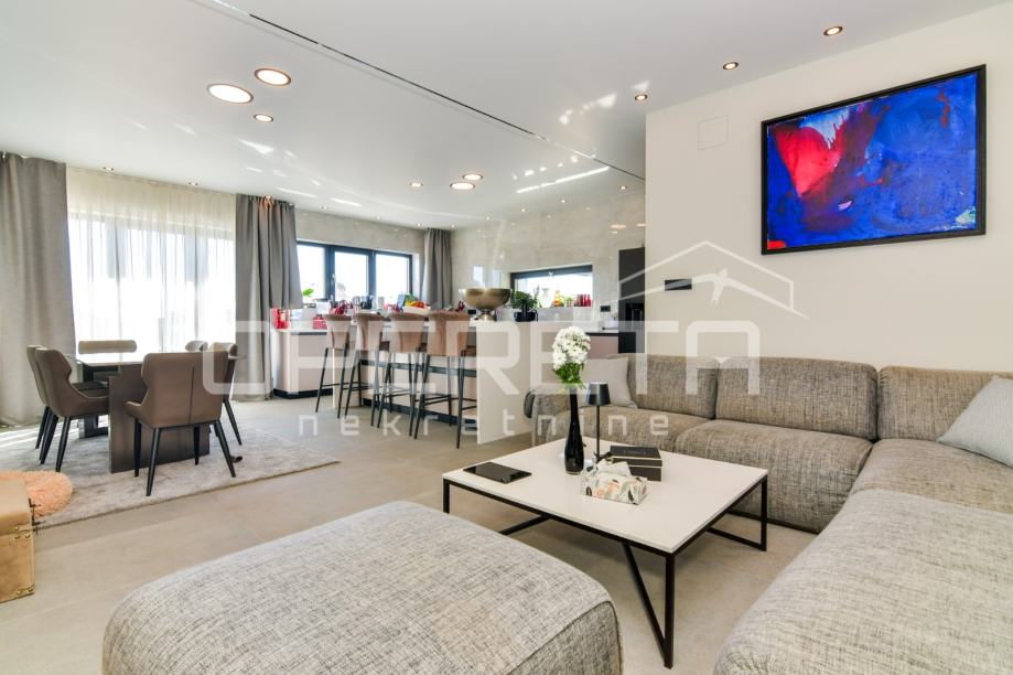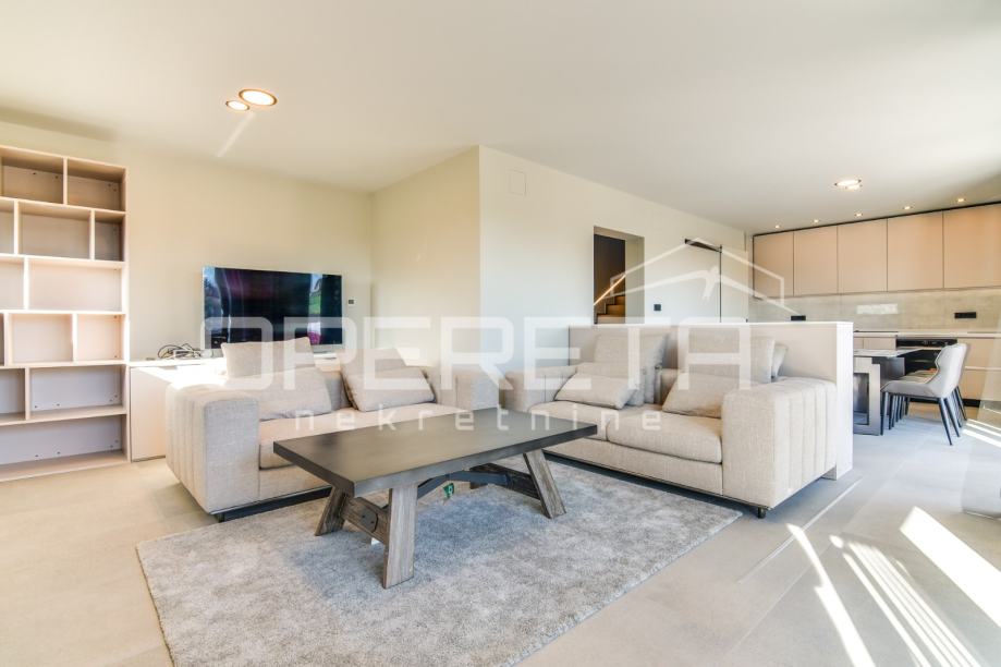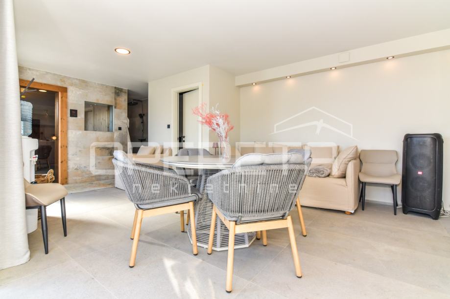 Prekrasna novogradnja visoke kvalitete. Kuća ima 2 odvojena stana, jedan 4s, jedan 3s oba sa velikim terasama. Konoba, sauna, vanjski prostor za druženje.