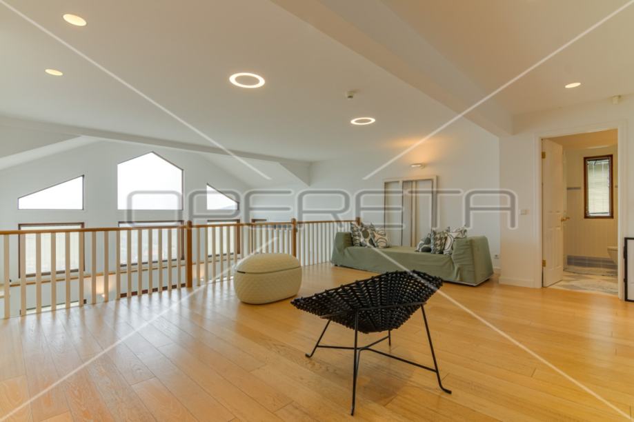 Izgrađena 2001. ( američki način gradnje, sustav s drvenim pločama pod nazivom Eco- pan, nova kanadska šindra 2022.- 50 god garancije) i kompletno obnovljena i opremljena 2008. dizajnerskim namještajem i izuzetno kvalitetnim materijalima. Prostire se na tri etaže.