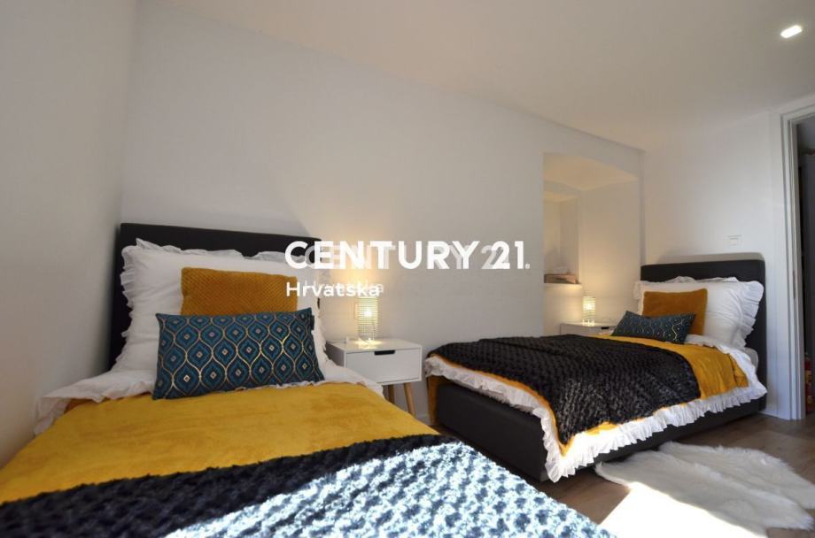 Gornja etaža sastoji se od ulaznog hodnika, kuhinje, wc-a, dnevnog boravka i blagavaone dok se iznad tog dnevnog prostora nalaze dvije spavaće sobe sa zajedničkom kupaonom i tavan.
