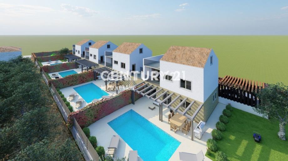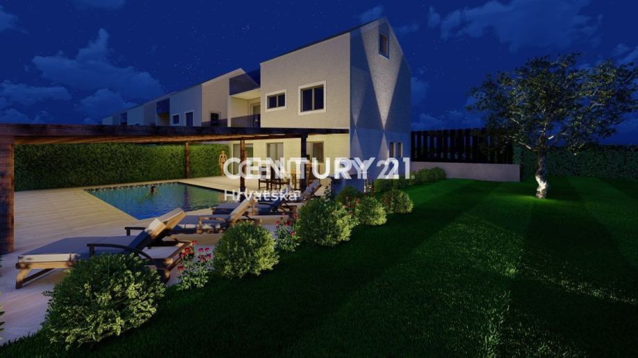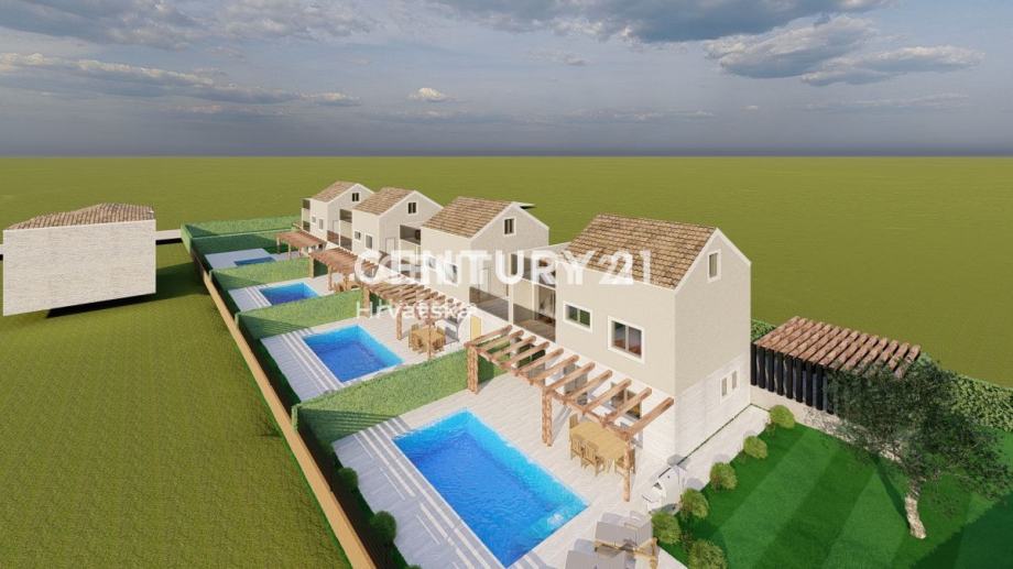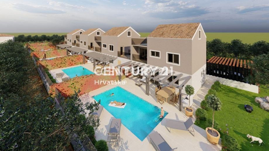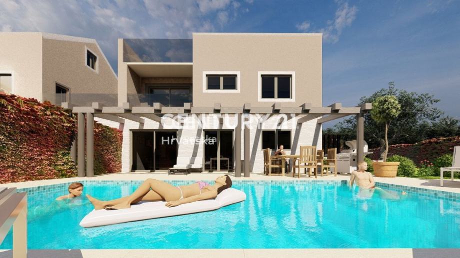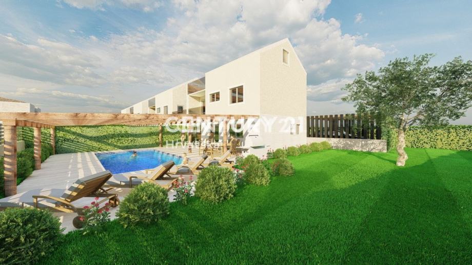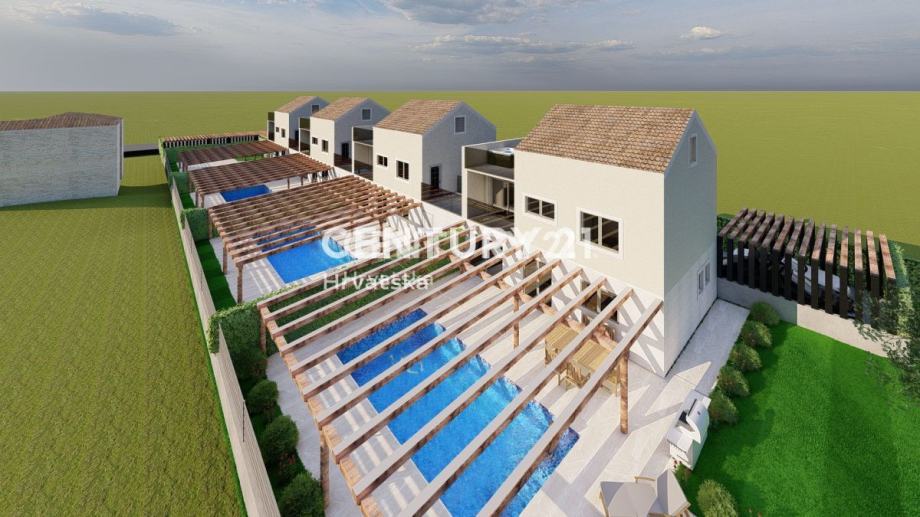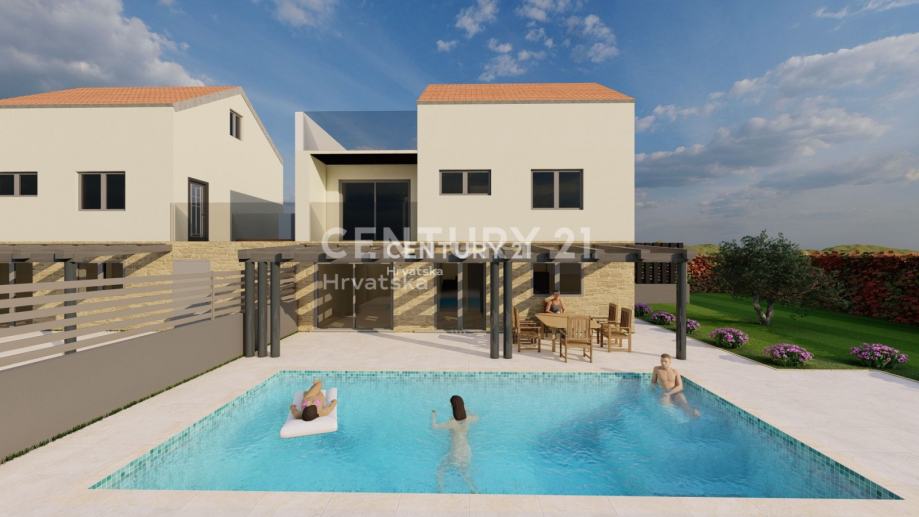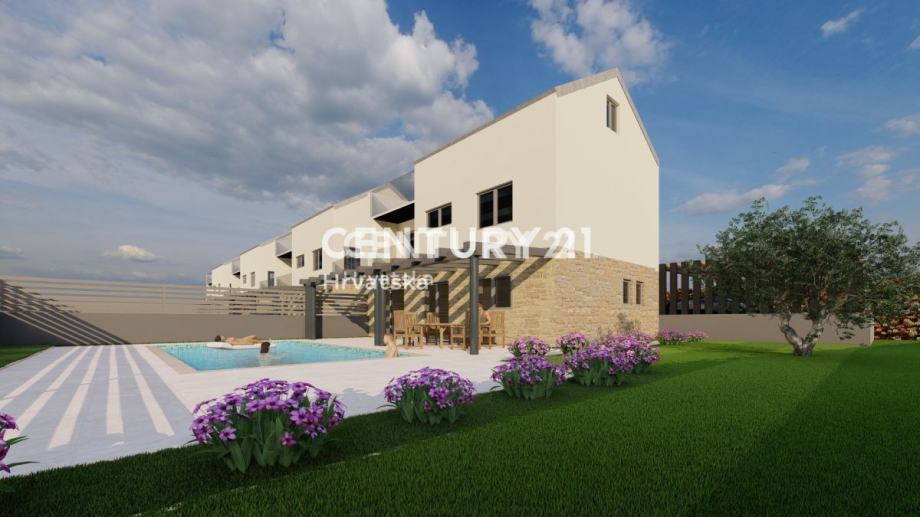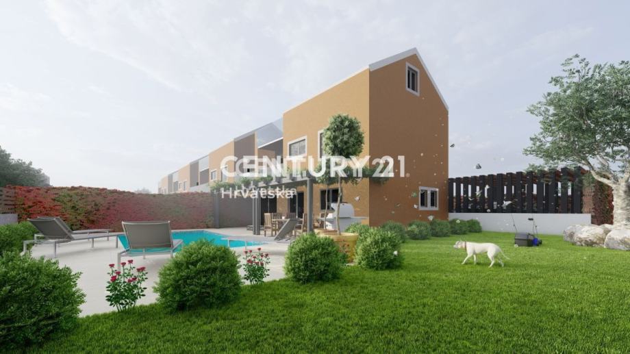 Kuća je smještena na parceli od 450m2, te je veličine 170m2 raspoređenih na tri etaže - prizemlje, prvi kat i potkrovlje.Prizemlje kuće sastoji se od dnevnog boravka, kuhinje sa blagovaonicom, jedne kupaonicu sa tuš kabinom.Na katu kuće smještene su tri spavaće sobe i dvije kupaone, te još jedna soba sa vlastitom kupaonicom u potkrovlju.