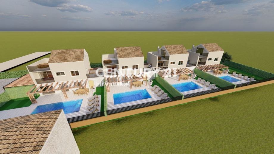 Ova kuća u novogradnji, trenutno u fazi gradnje, nalazi se 9km od Poreča i mora.