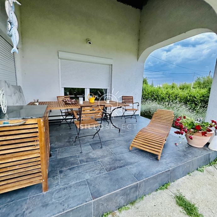 Moderna garaža: Nova garaža (9 x 5 m), završena ove godine, opremljena motoriziranim vratima i staklenim stijenkama (2 komada) rađenim po mjeri koje omogućuju direktan izlaz na dvorište.
