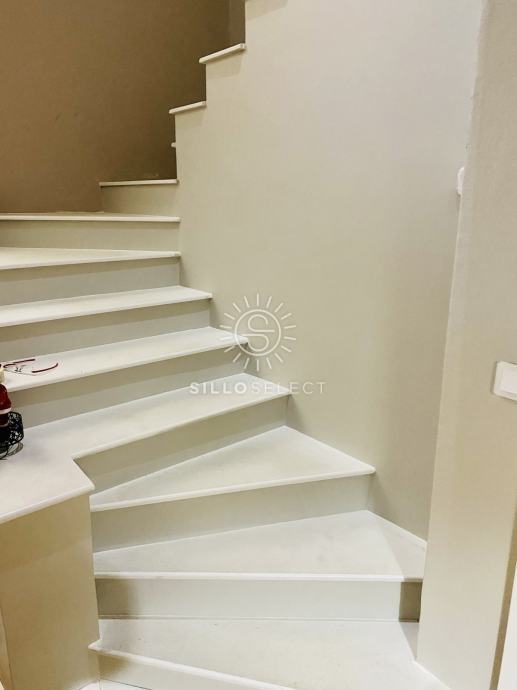 Prvi kat: Mramorne stepenice obložene kamenom vode na kat gdje se nalaze tri prostrane spavaće sobe, kupaonica s WC-om i dva balkona.