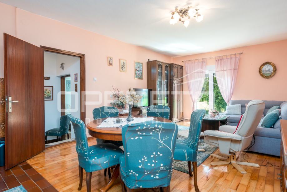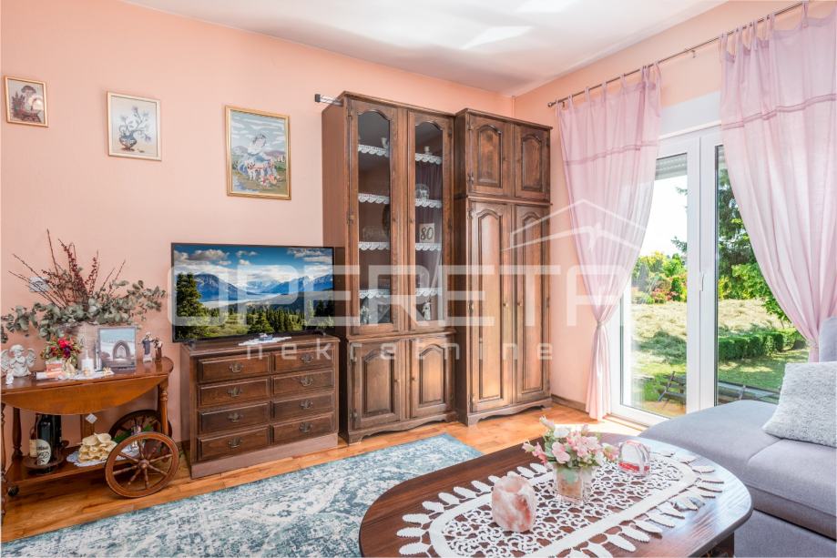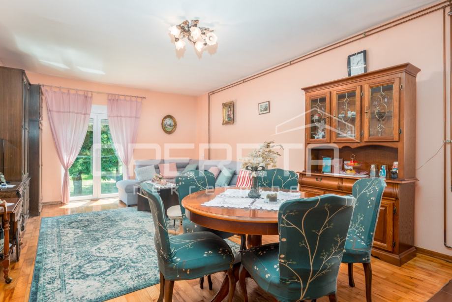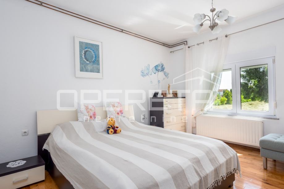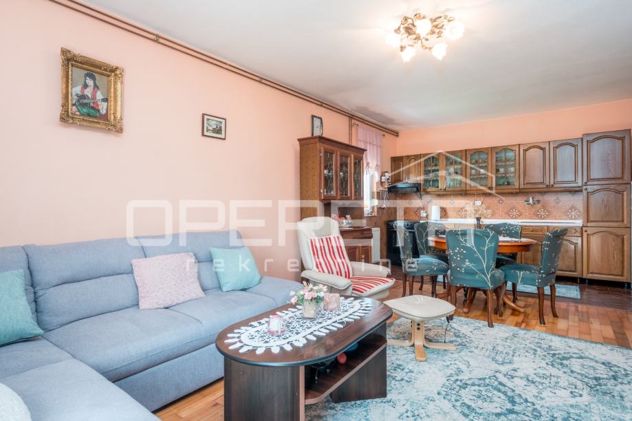 Na 10 minuta od Zagreba u Odri smještena je samostojeća kuća. Prostire se na 3 etaže (podrum, visoko prizemlje i potkrovlje). U podrumu je smještena garaža za 2 automobila te 3 prostorije. U visokom prizemlju je odvojeni stan koji se sastoji od ulaznog hodnika, dnevnog boravka s blagovaonicom i kuhinjom, 3 spavaće sobe od kojih jedna ima izlaz na lođu, kupaonice, odvojenog WC-a te ostave.