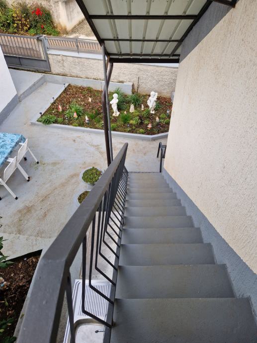 U prizemlju se nalaze kuhinja, dnevni boravak i kupaonica, zatim garaža te spremište koje je moguće prenamijeniti u dodatni stambeni prostor. Vanjskim stubištem dolazi se na kat koji se sastoji od hodnika, dvije spavaće sobe, toaleta i balkona, preko kojeg se ulazi u još jednu sobu i izlazi na prostranu terasu.