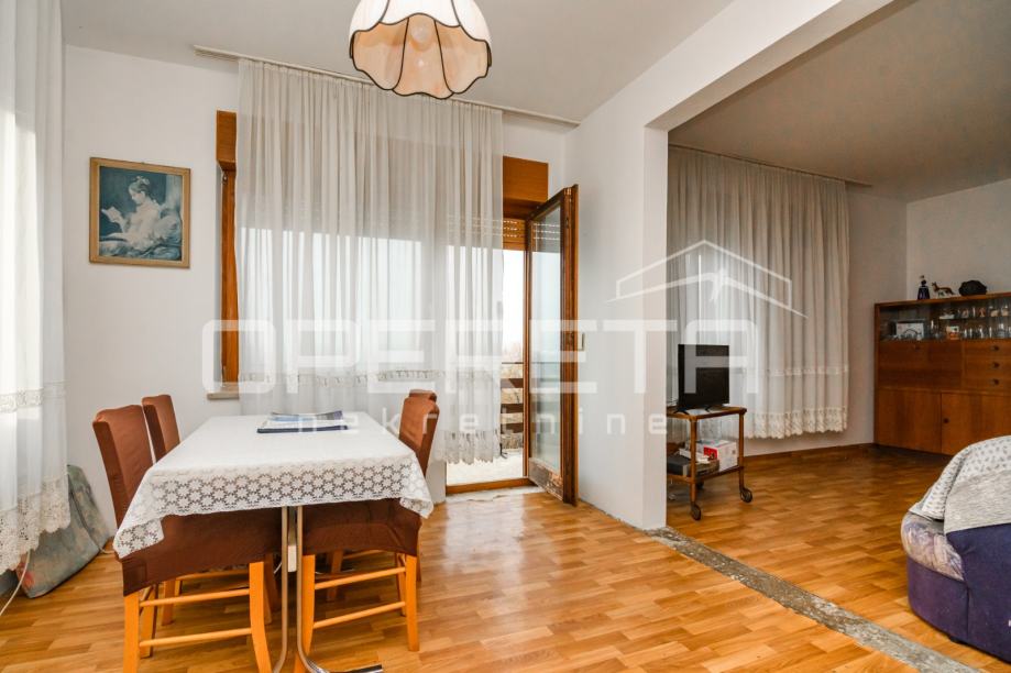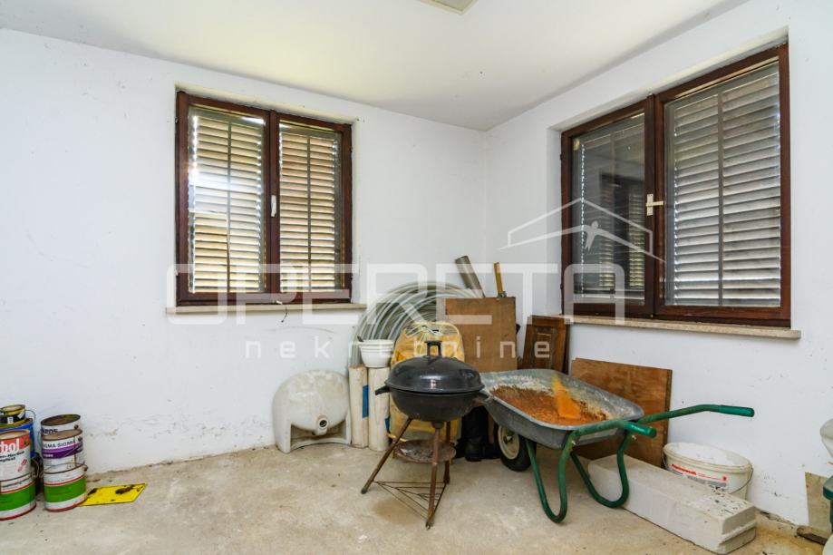 Troetažna samostojeća kuća na mirnoj lokaciji u neposrednoj blizini Oroslavja, NKP 147 m2, na uzvišenoj i blago nagnutoj parceli od 1.158 m2, s neometanim panoramskim pogledom na zelenilo i Sljeme. Na donjoj etaži nalaze se dvije prostorije s izlazom na terasu s dvorišne strane. Nutarnje stubište povezuje ju s prizemnom etažom na kojoj se nalazi "open space" dnevni boravak s kuhinjom i blagovaonicom te izlazom na balkon, kupaonica i ostava. Nutarnjim stubištem dolazi se do kata gdje se nalaze 3 spavaće sobe sa izlazom na balkon i priprema za kupaonicu. Kuću je potrebno adaptirati/dovršiti.