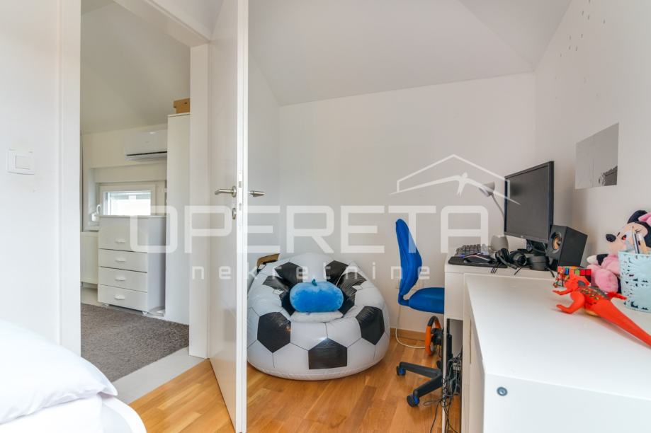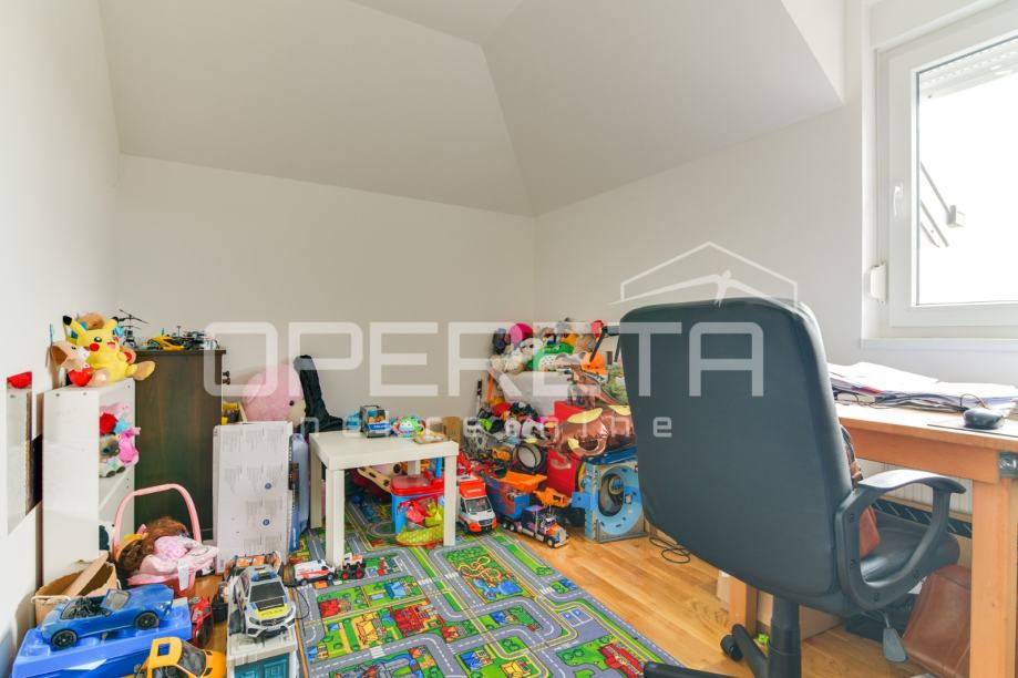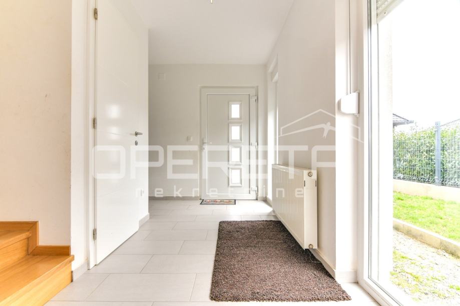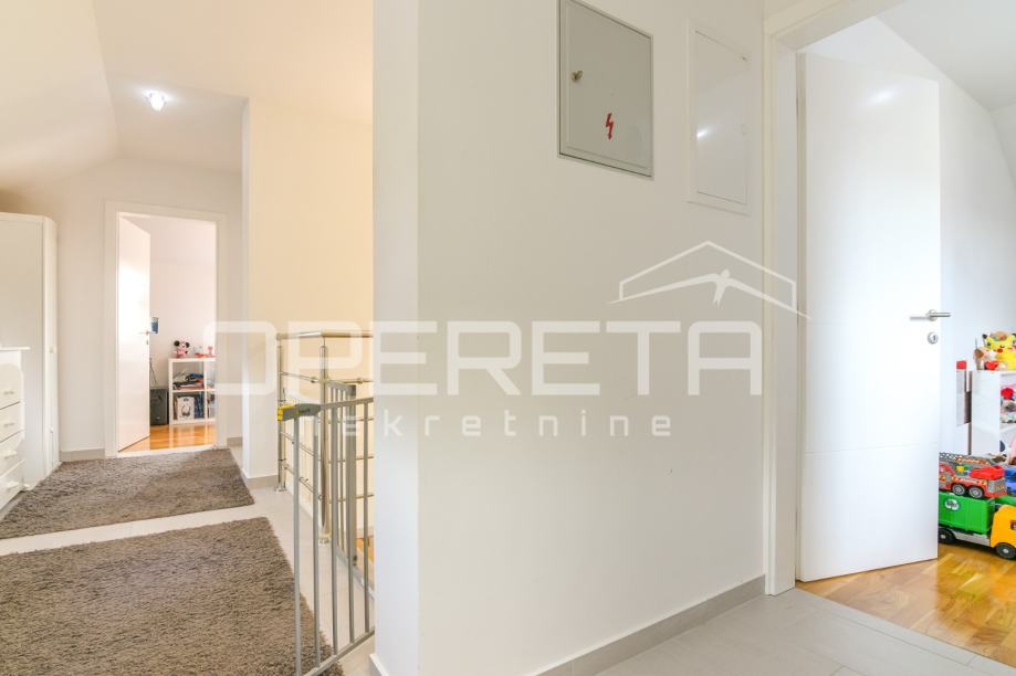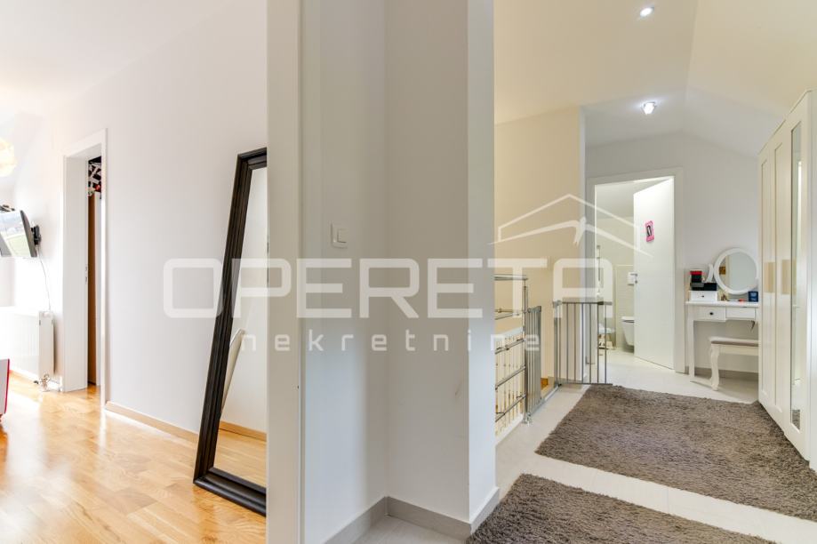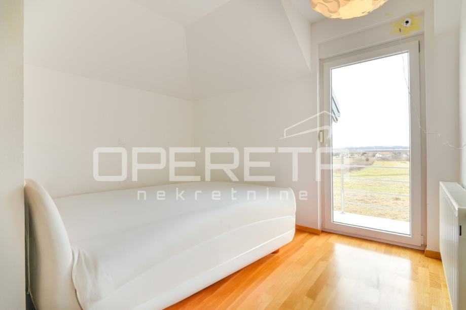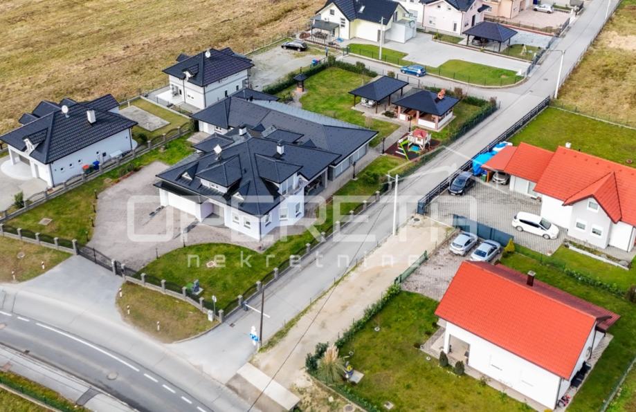 Prodaje se kvalitetno građena, prozračna i puna svjetla obiteljska kuća/visoka prizemnica, novije gradnje, BRP 170m2 ( NKP 152 m2) smještena na ravnom zemljištu od 500 m2 pravilnog pravokutnog oblika. Kuća je funkcionalnog tlocrta i razvedena u 2 etaže: prizemlje od 96 m2 sastoji se od "open space" koncepta dnevnog boravka, kuhinje i blagovaonice s izlazom na terasu, wc-a, ostave, hodnika i garaže. Na katu od 74 m2 nalazi se "master" spavaća soba s "walk-in" garderobom, 2 dječje/radne sobe, kupaonica s wc-om, hodnik i stubište. Centralno plinsko grijanje, klimatizirana, vrhunska keramika i parketi. Orijentacija na sve 4 strane svijeta doprinosi svjetlini svih prostorija i atraktivnosti cijele nekretnine. Prodaje se namještena ili po dogovoru. U dvorištu prostor za parkiranje još najmanje 5 automobila. Vlasništvo uredno, moguća kupnja kreditom. Izuzetna prilika za kvalitetan obiteljski život na mirnoj lokaciji u blizini svih potrebnih sadržaja. Do centra Oroslavja 2 min, do Zaboka 7 min i Zagreba 20 minuta vožnje. Preporuka!