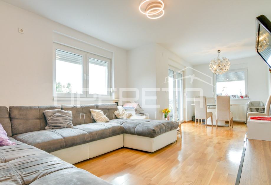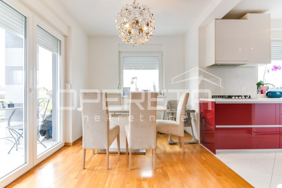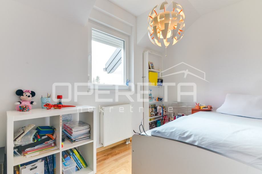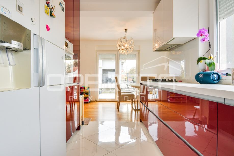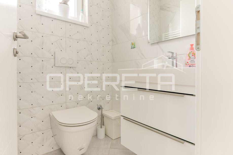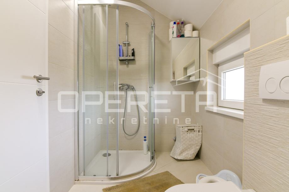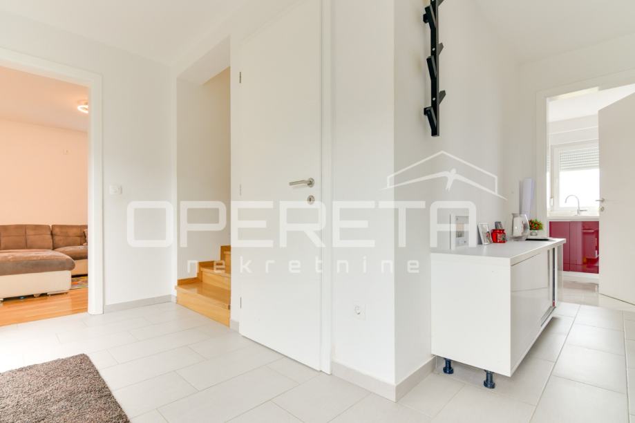 Prodaje se kvalitetno građena, prozračna i puna svjetla obiteljska kuća/visoka prizemnica, novije gradnje, BRP 170m2 ( NKP 152 m2) smještena na ravnom zemljištu od 500 m2 pravilnog pravokutnog oblika. Kuća je funkcionalnog tlocrta i razvedena u 2 etaže: prizemlje od 96 m2 sastoji se od "open space" koncepta dnevnog boravka, kuhinje i blagovaonice s izlazom na terasu, wc-a, ostave, hodnika i garaže. Na katu od 74 m2 nalazi se "master" spavaća soba s "walk-in" garderobom, 2 dječje/radne sobe, kupaonica s wc-om, hodnik i stubište. Centralno plinsko grijanje, klimatizirana, vrhunska keramika i parketi. Orijentacija na sve 4 strane svijeta doprinosi svjetlini svih prostorija i atraktivnosti cijele nekretnine. Prodaje se namještena ili po dogovoru. U dvorištu prostor za parkiranje još najmanje 5 automobila. Vlasništvo uredno, moguća kupnja kreditom. Izuzetna prilika za kvalitetan obiteljski život na mirnoj lokaciji u blizini svih potrebnih sadržaja. Do centra Oroslavja 2 min, do Zaboka 7 min i Zagreba 20 minuta vožnje. Preporuka!