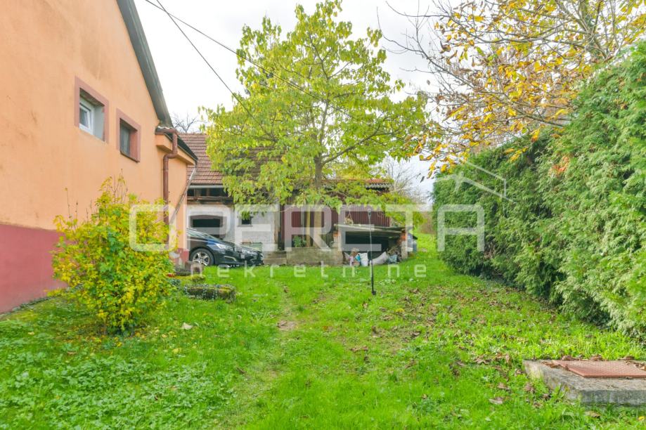 Osim same kuće, na parceli od 5026 m2 nalazi se i pomoćna zgrada u funkciji dvije garaže i spremišta,dok se iza kuće prostire veliki voćnjak.