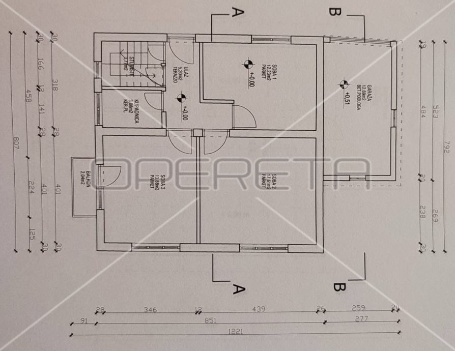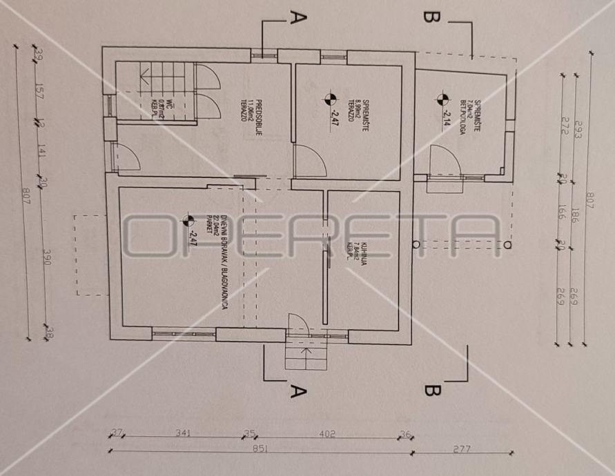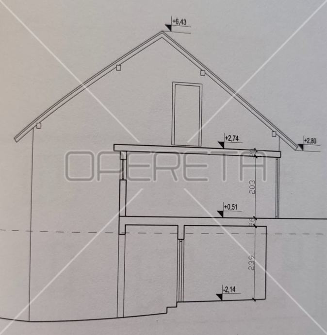Sama stambena jedinica ima ukupnu bruto površinu u iznosu od 203,78m2 (suteren 78,25m2, prizemlje 83,90m2, potkrovlje 41,63m2).