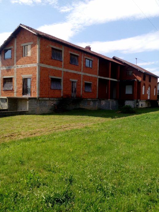 Nedovršena višenamjenska poslovno- stambena kuća (podrum površine 200m2, a prizemlje i kat 400m2) ukupne površine 600m2 na placu od 1353m2. Kuća je pogodna za starački dom, hostel, obrt ili nešto slično. Kroz cijelu kuću je razvedena struja, a u prizemlju i vodovodne instalacije. Visoki roh bau izvedba. Objekat je upisan u gruntovnicu i katastar. Građevinska dozvola. Moguća zamjena za stan u Osijeku ekvivalentno vrijednosti kuće ili stan na moru.