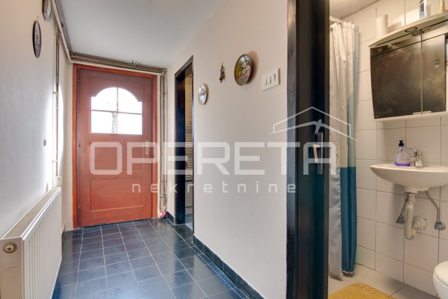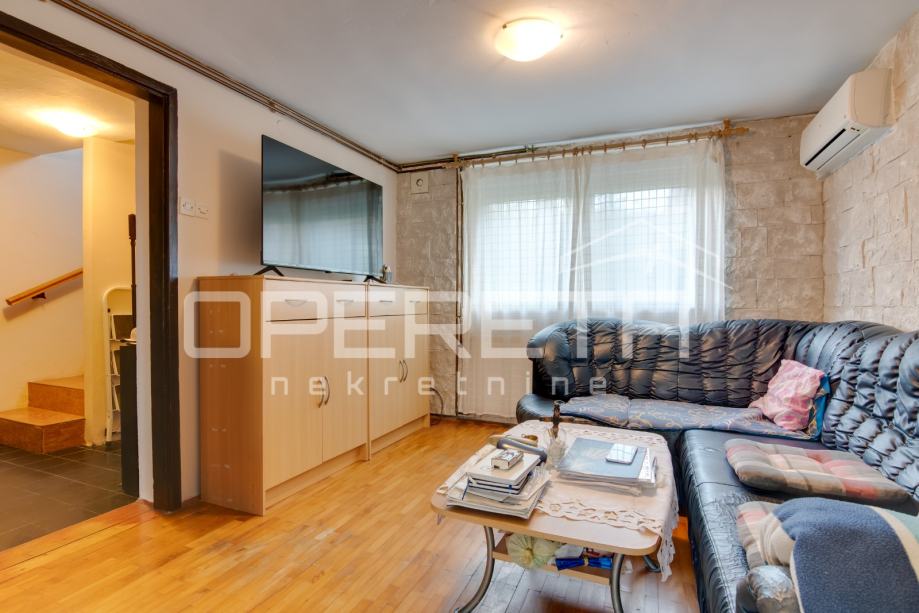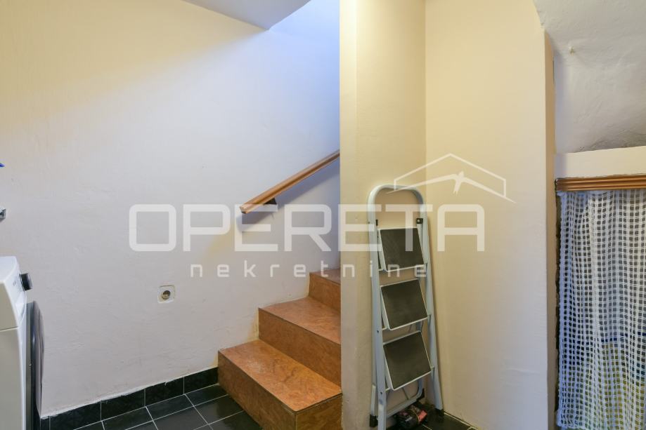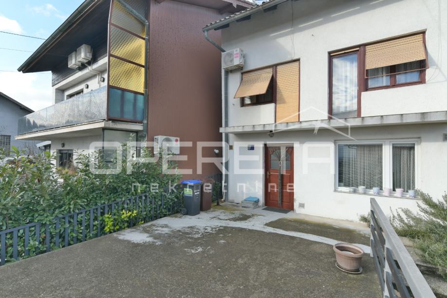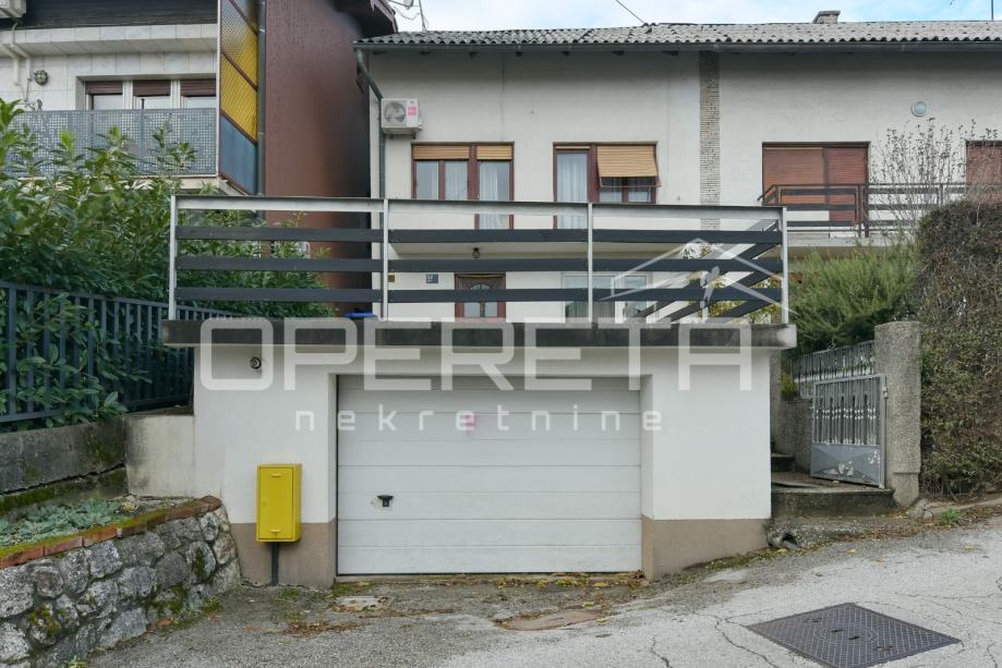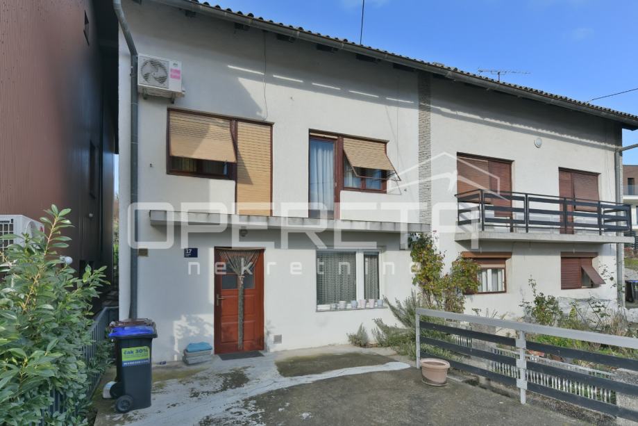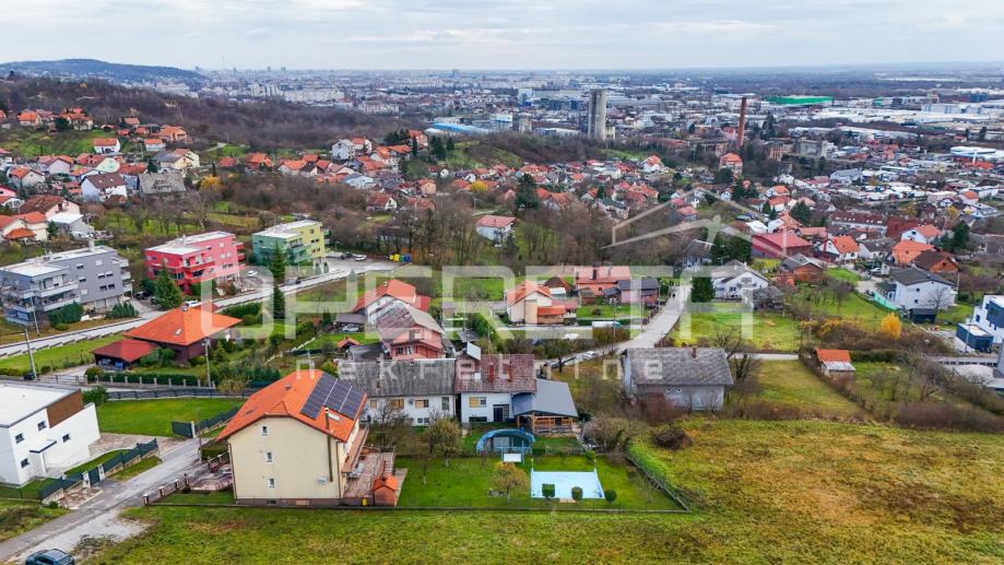Troetažna kuća NKP 131 m2 orijentacije istok - zapad s panoramskim pogledom na zapadni dio grada. Poluugrađena, proteže se na 3 etaže: prizemlje, kat i potkrovlje. U prizemlju se nalazi dnevni boravak, kuhinja s blagovaonicom, kupaonica s wc-om, zaseban wc i ulazni hodnik. Nutarnjim stubištem povezano je s katom na kojem se nalaze 3 spavaće/radne sobe ( dvije s izlazom na zajednički balkon) i hodnik. Potkrovlje je visoko, u roh bau fazi izgradnje i moguće ga je preurediti u zaseban stan. Kuća je za djelomičnu adaptaciju. Pripada joj grijana garaža od 25 m2, a ispred kuće još jedno parkirno mjesto. Svi potrebni sadržaji 1-2 km, do Zagreba 10 min vožnje. Vlasništvo uredno i moguća kupnja kreditom banke. Izvrsna prilika za najam i/ili život!