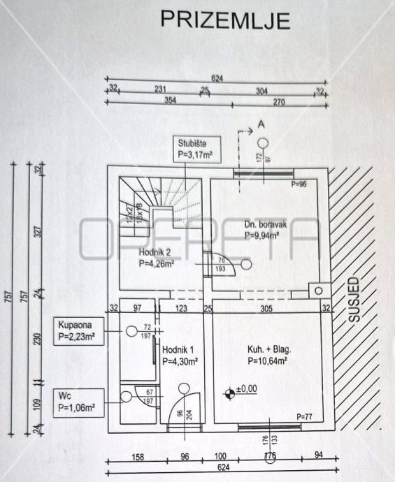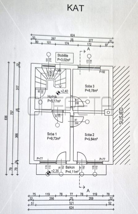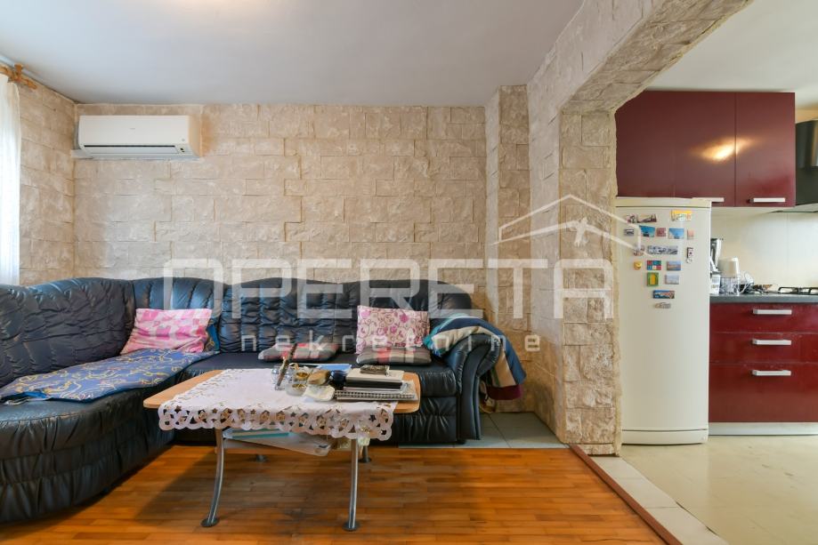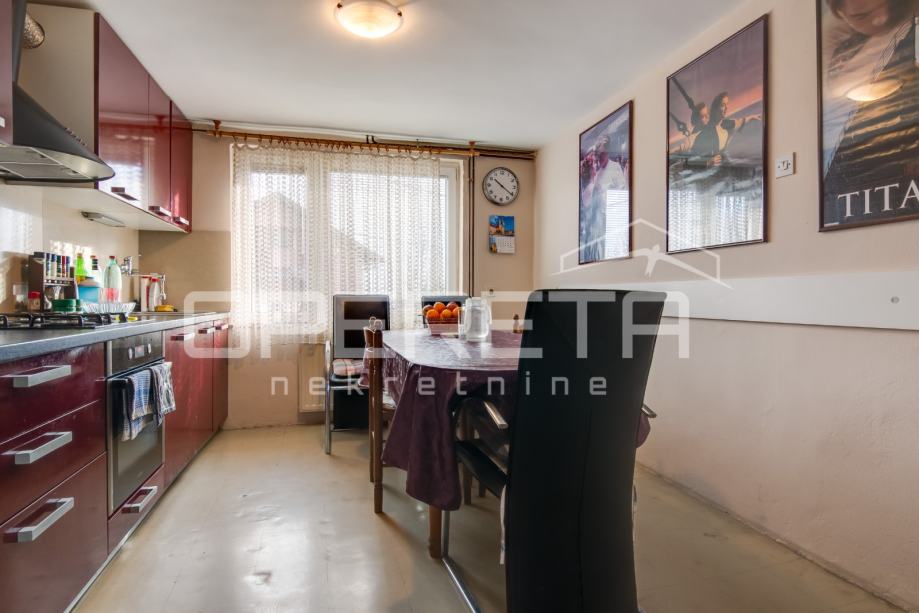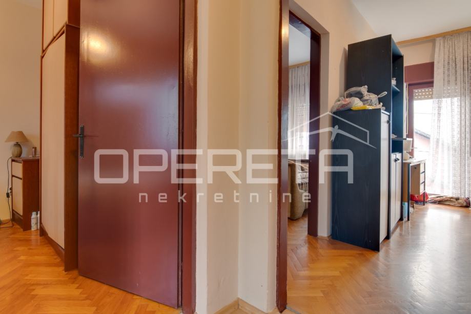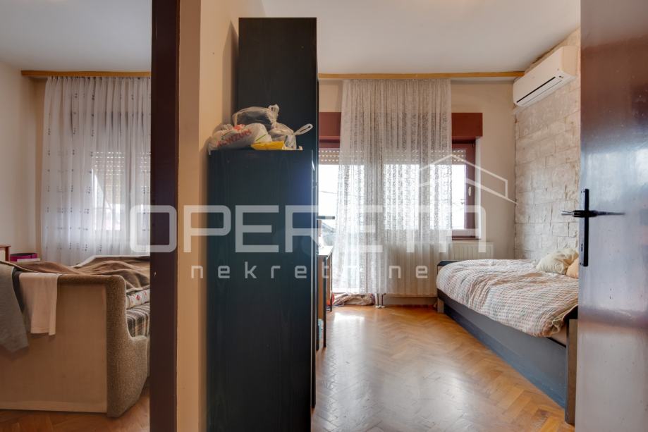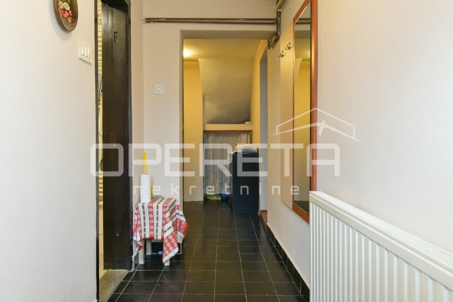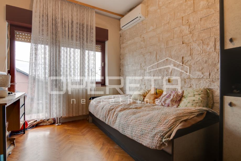 Troetažna kuća NKP 131 m2 orijentacije istok - zapad s panoramskim pogledom na zapadni dio grada. Poluugrađena, proteže se na 3 etaže: prizemlje, kat i potkrovlje. U prizemlju se nalazi dnevni boravak, kuhinja s blagovaonicom, kupaonica s wc-om, zaseban wc i ulazni hodnik. Nutarnjim stubištem povezano je s katom na kojem se nalaze 3 spavaće/radne sobe ( dvije s izlazom na zajednički balkon) i hodnik. Potkrovlje je visoko, u roh bau fazi izgradnje i moguće ga je preurediti u zaseban stan. Kuća je za djelomičnu adaptaciju. Pripada joj grijana garaža od 25 m2, a ispred kuće još jedno parkirno mjesto. Svi potrebni sadržaji 1-2 km, do Zagreba 10 min vožnje. Vlasništvo uredno i moguća kupnja kreditom banke. Izvrsna prilika za najam i/ili život!
