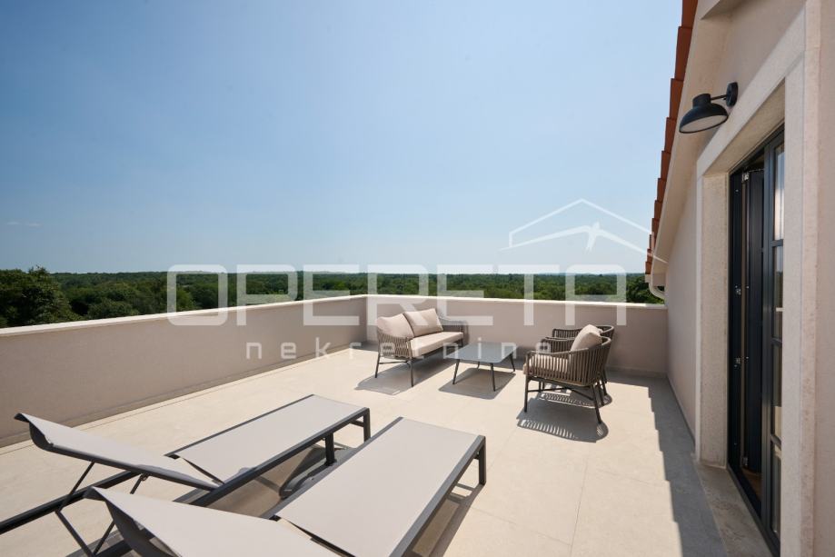 Prava kruna vile je potkrovlje od 96 m², gdje se nalazi još jedna spavaća soba s kupaonicom, udoban TV room te izlaz na spektakularnu krovnu terasu s otvorenim, panoramskim pogledom na more.
