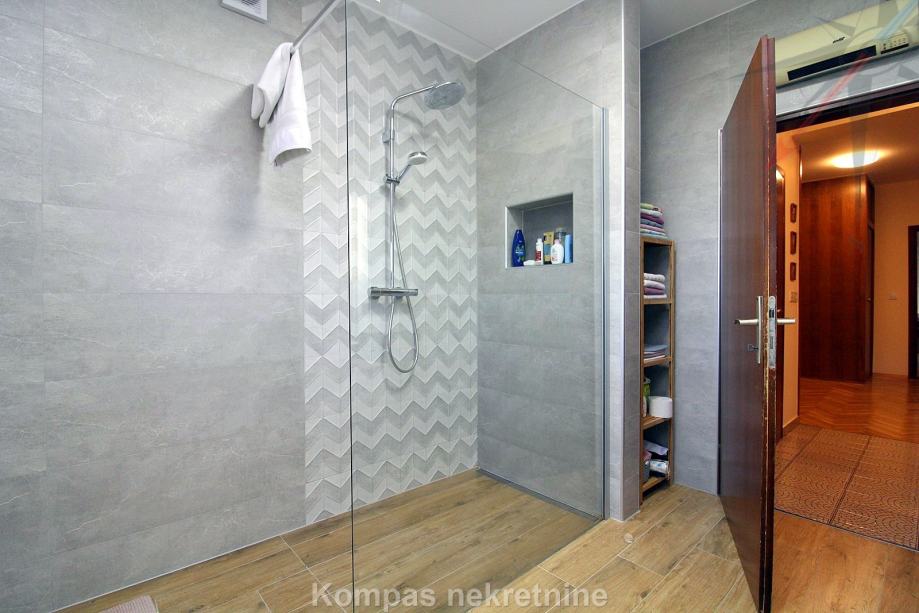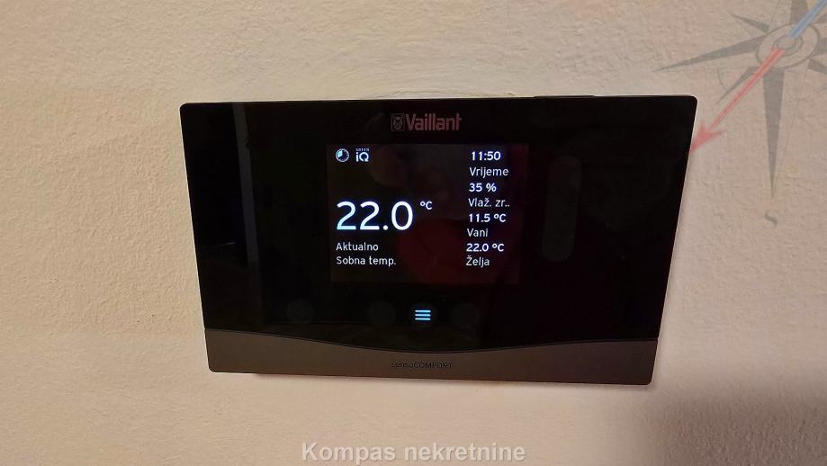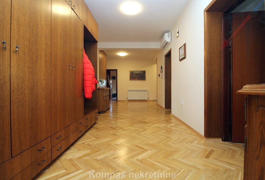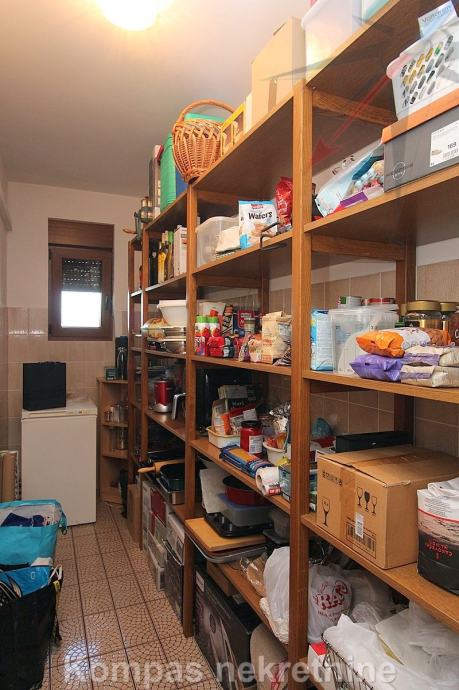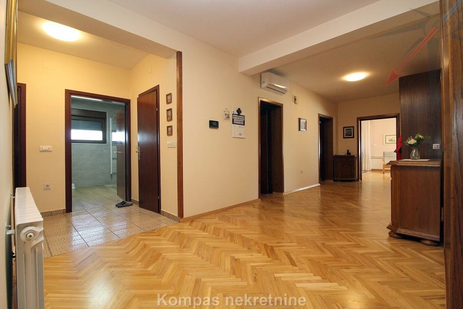 STAN NA 1. KATU: ima klima uređaj u dnevnom boravku i hodniku, parket, mogućnost optičkog interneta, grijanje je na plin, uz mogućnost korištenja peći na kruta goriva. Voda se zagrijava solarnim panelima. Prodaje se sa namještenom kuhinjom i ugradbenim ormarima, moguć dogovor oko ostatka namještaja.