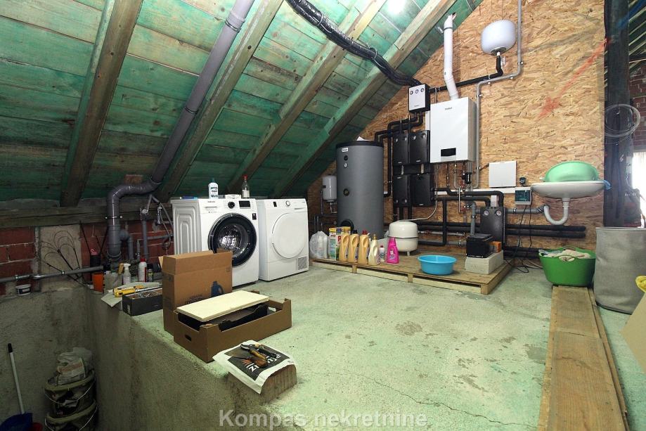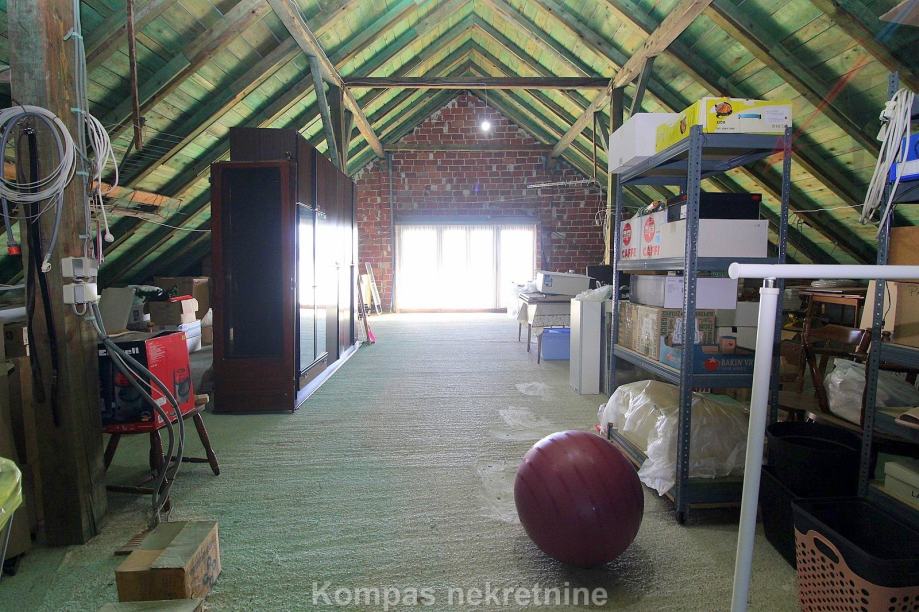 2. KAT, potkrovlje, 200 m²: mali balkon, otvoreni prostor koji trenutno služi kao spremište. Ima dovedene sve instalacije, tako da se može urediti u stambeni prostor.