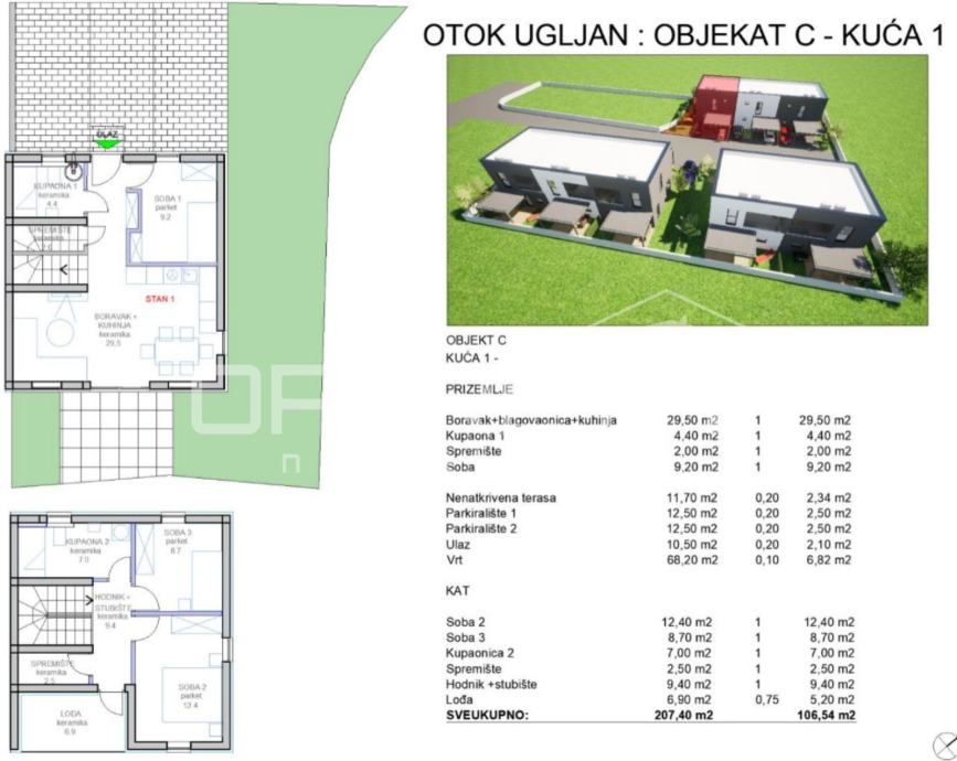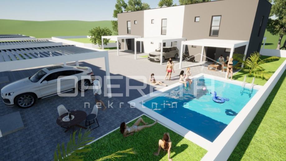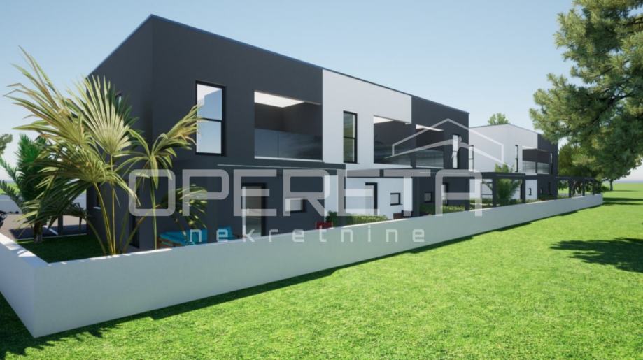 Ekskluzivna luksuzna kuća u nizu, smještena na idealnoj lokaciji u mjestu Ugljan cca. 90 metara od mora i plaže s pogledom na iste. Jedan objekt s 2 kuće u nizu. Na istoj parceli predviđena su još 2 objekta od po 3 kuće u nizu.