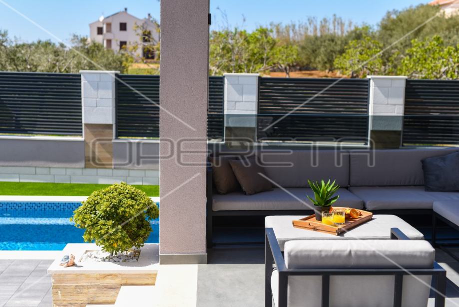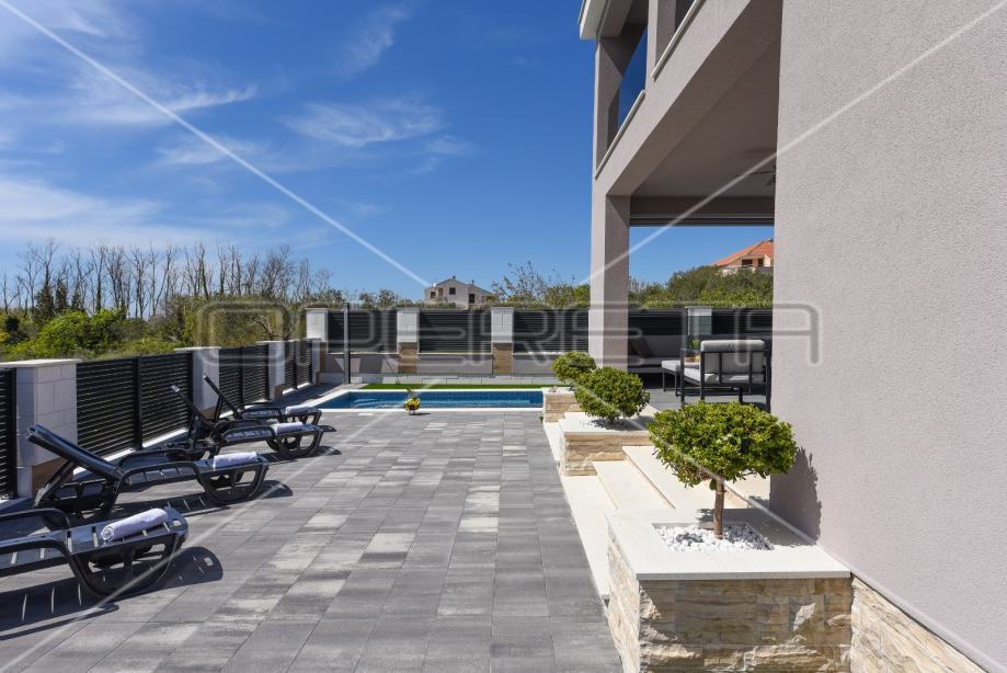 Prodaje se izuzetno luksuzna vila u mjestu Privlaka kod Zadra, udaljena stotinjak metara od mora,koja se prostire na parceli od 553 m2. Kuća se sastoji od prizemlja i prvog kata te ukupno ima 4 sobe i 4 kupaonice. Ispred same kuće nalazi se bazen. Grijanje je predviđeno kao multi split sistem klima - svaka soba ima klima uređaj te dnevni boravak ima dvije. Ostali detalji na upit.